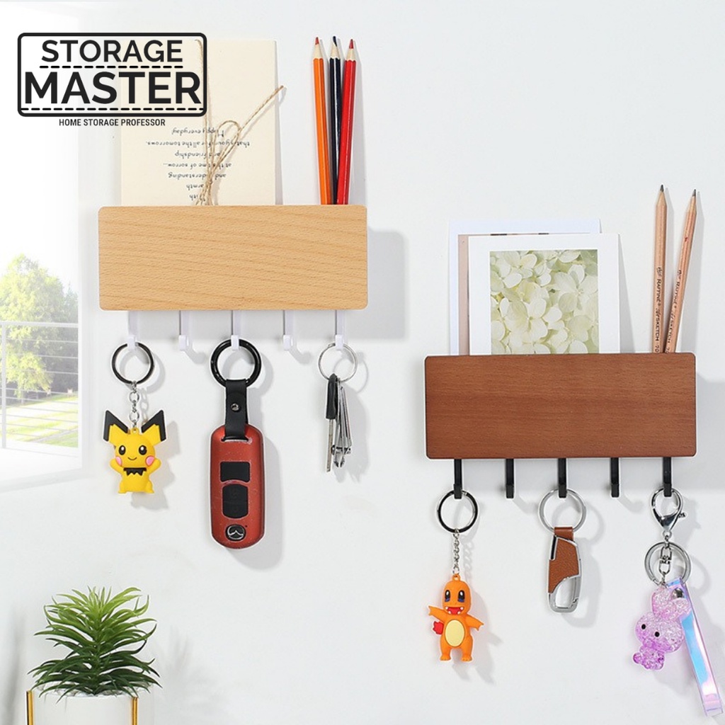 Japanese Wooden Style Key Holder wall mounting with Storage box Key Rack Key Hanger Key Organizer