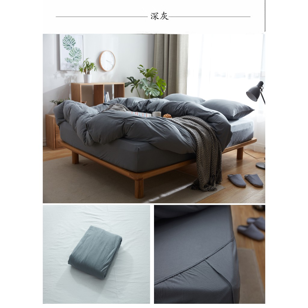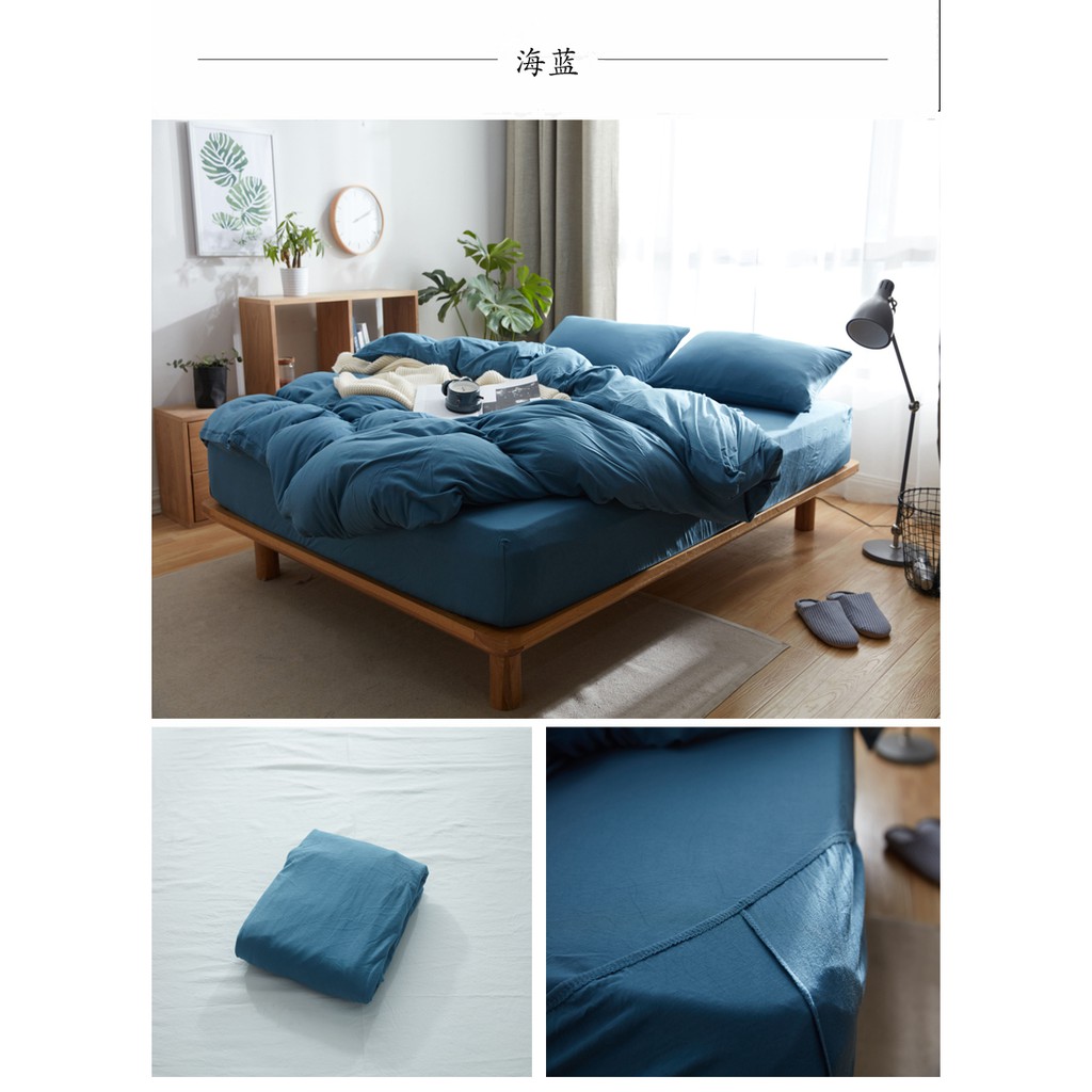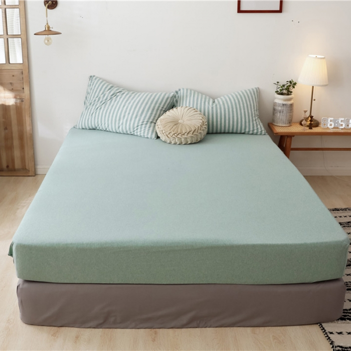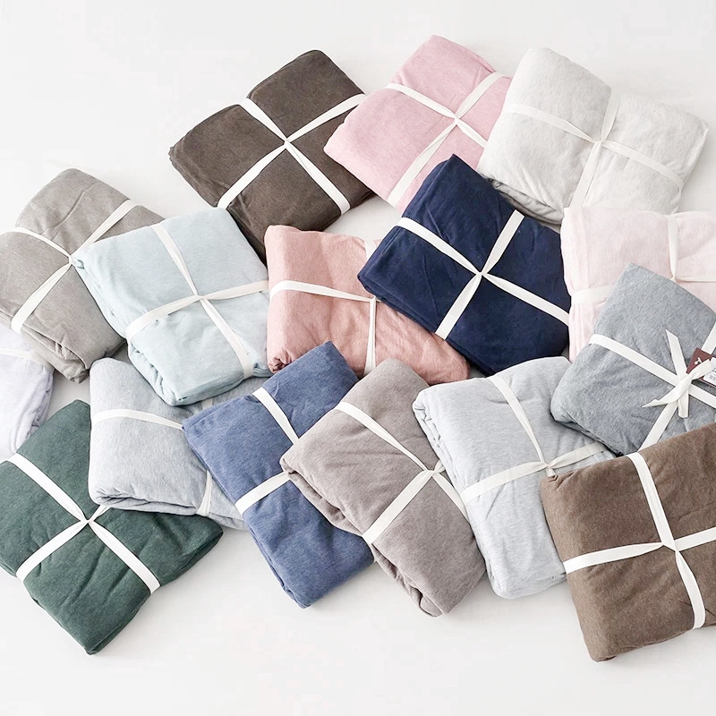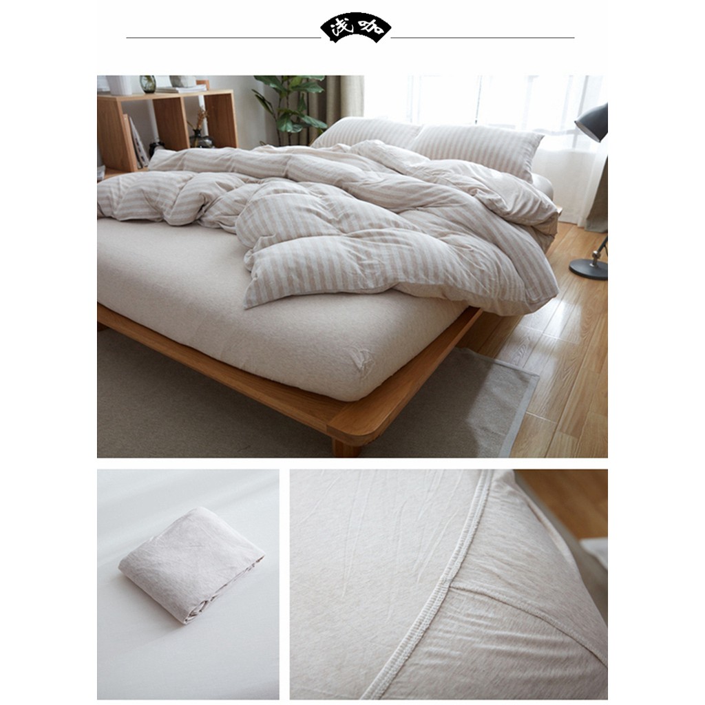 Japanese style solid color cotton fitted sheet plain single queen king size flat sheet