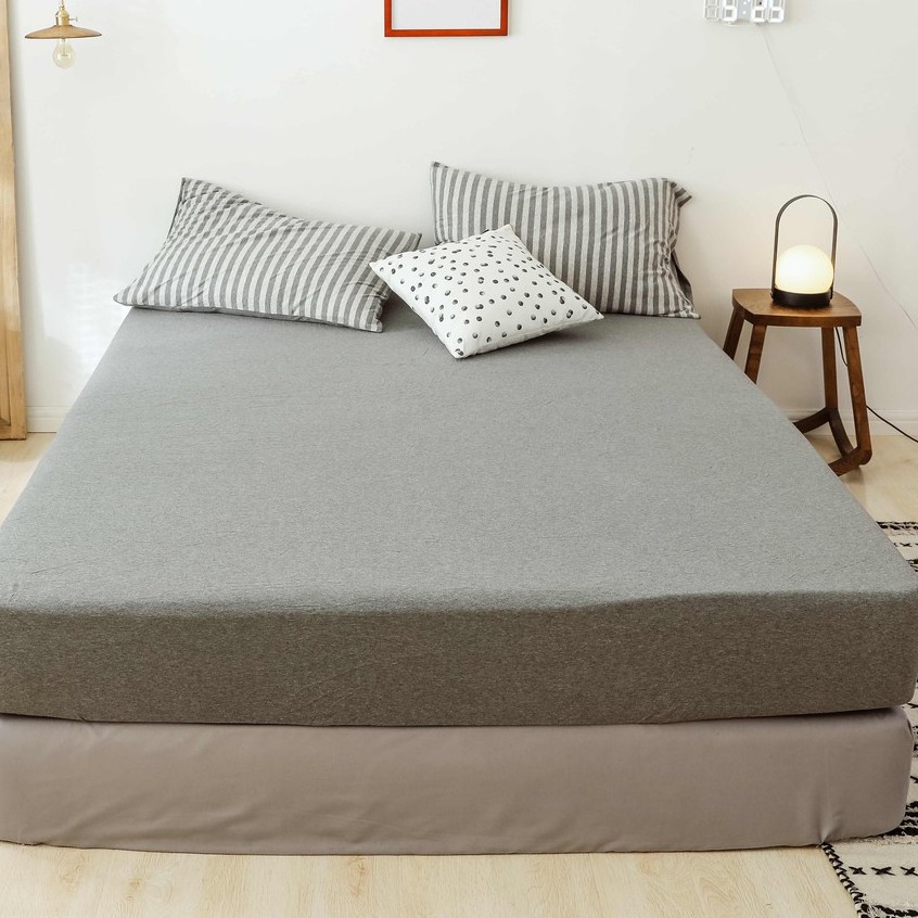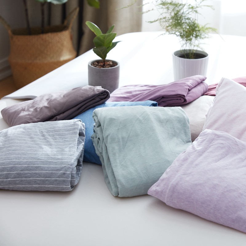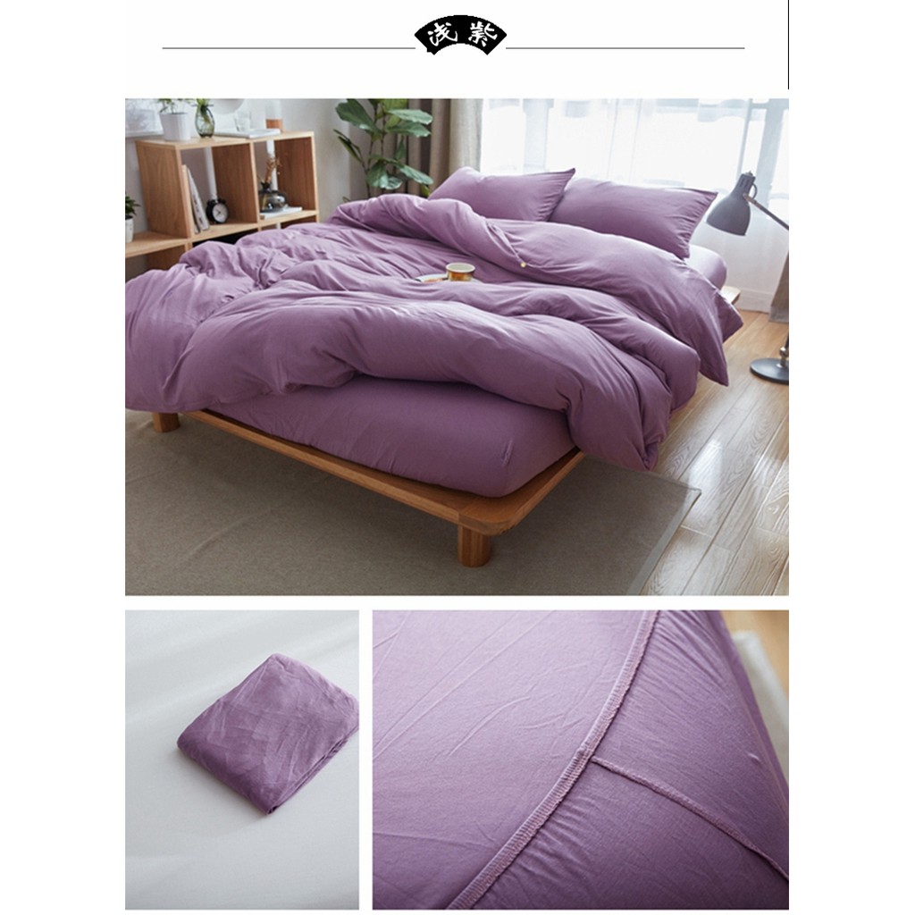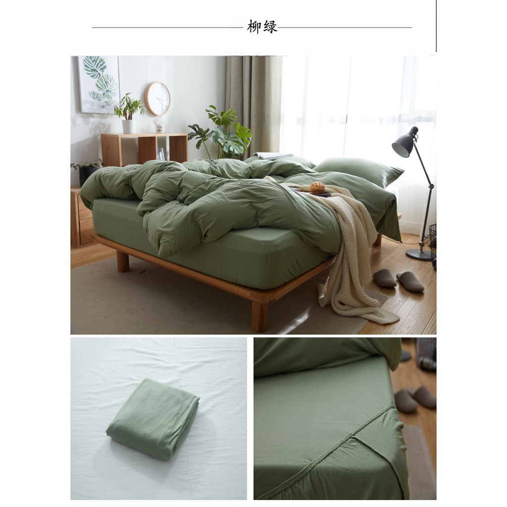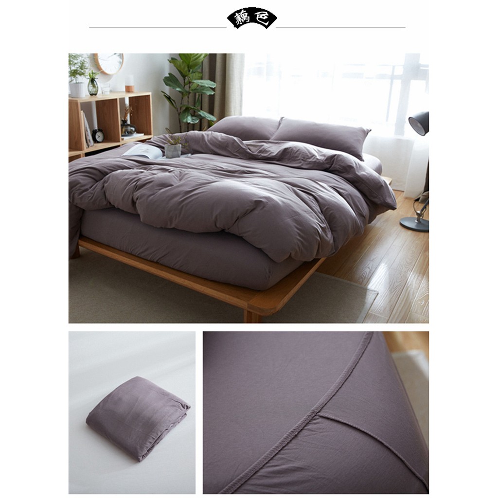 Japanese style solid color cotton fitted sheet plain single queen king size flat sheet