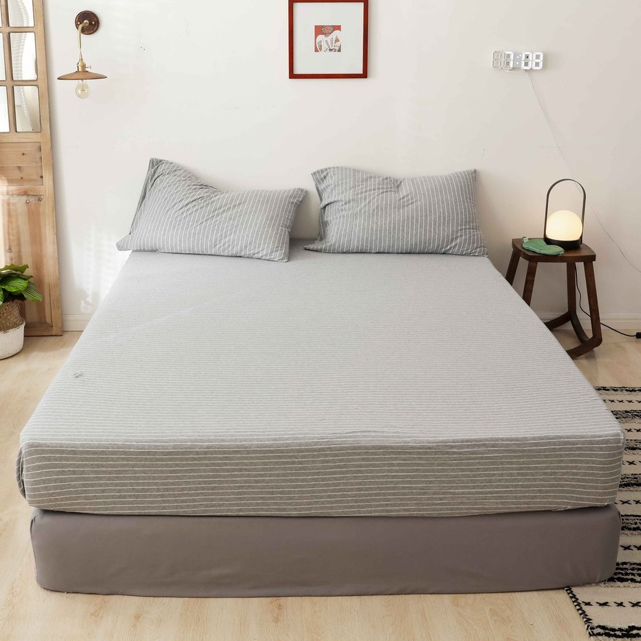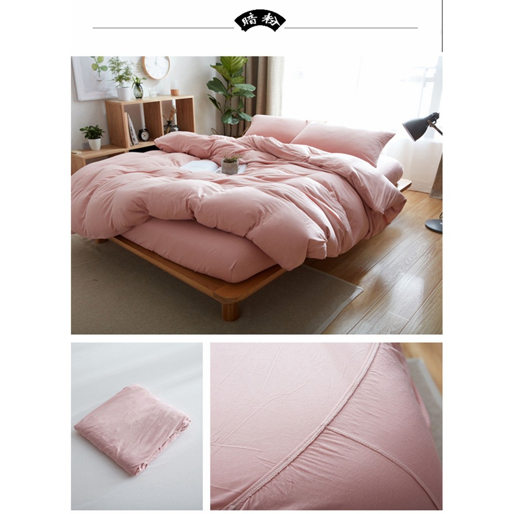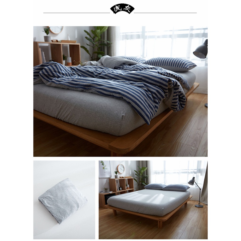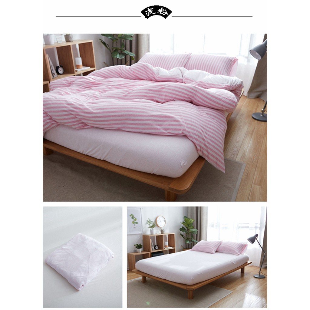 Japanese style solid color cotton fitted sheet plain single queen king size flat sheet