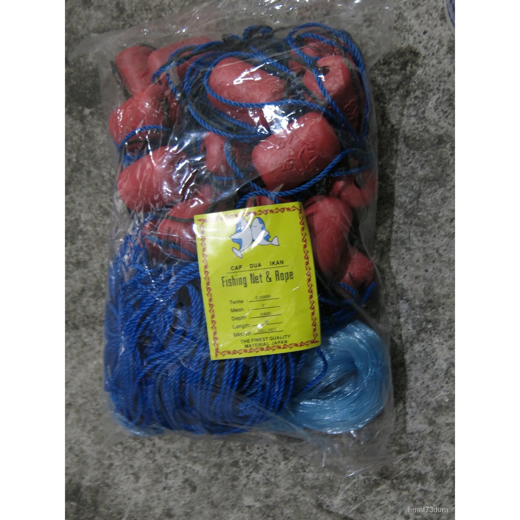 Jaring Pukat Ikan Tangsi siap , 0.30MM X 1.5" TO 4.5" X 30MD X 30MTR,Fishing Nylon Net With Rope And Y3 Float pWsr