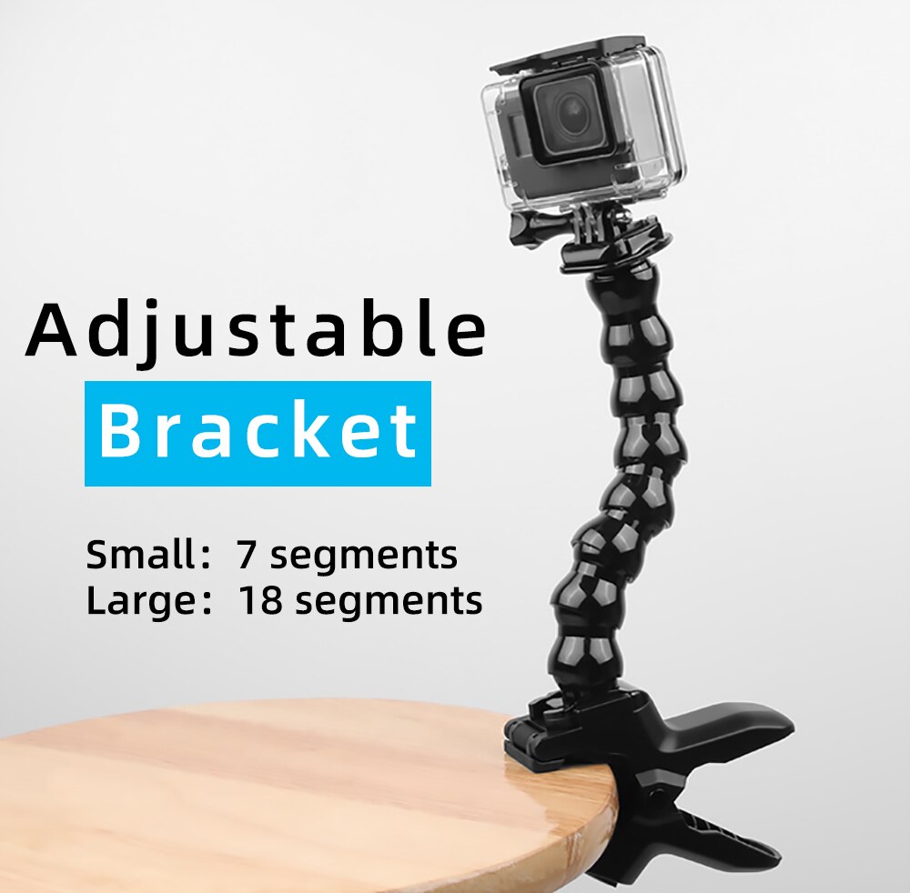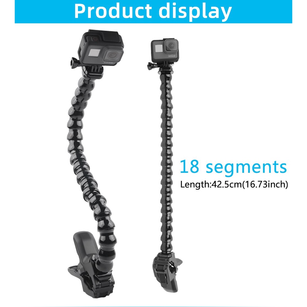 Jaws Flex Clamp Mount With Flexible Adjustable Gooseneck Portable Tripod Monopod Selfie Stick For Gopro Hero 13 9 8 Sjcam Insta 360 One R Dji Osmo Action Camera Accessories