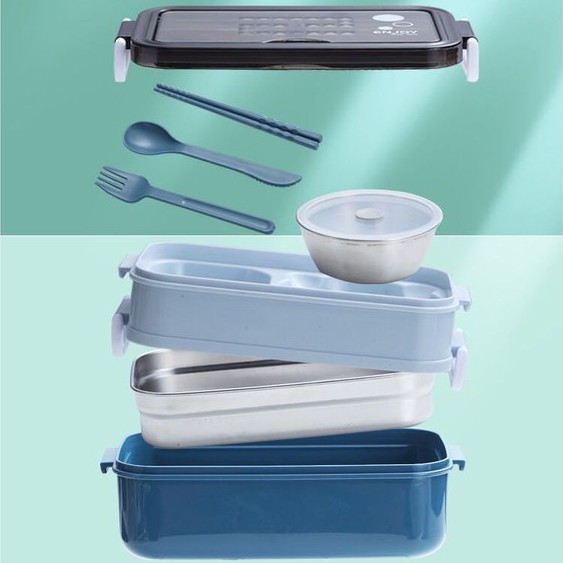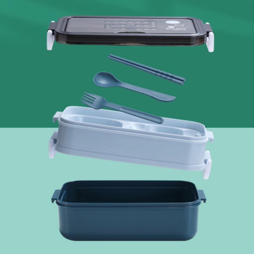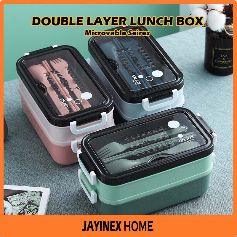 Jayinex Double Layer 1.5L Capacity Lunch Box with Spoon, Fork, Knife & Chop Stick Microwave Safe Food Storage Container