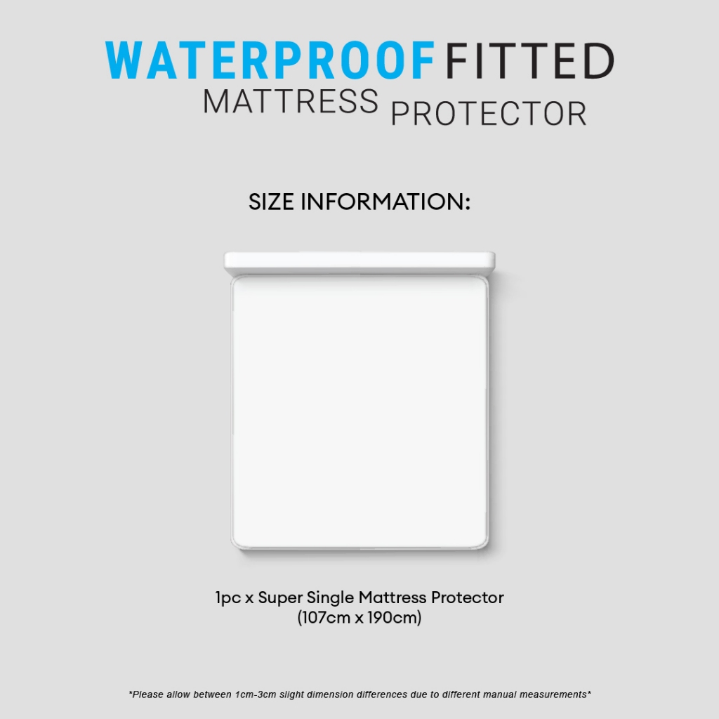 Jean Perry Waterproof Fitted Mattress Protector | Anti Dust Mite | Deep Pocket 40cm - Super Single