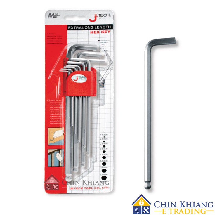 Jetech BL-C9 9 Pieces Ball Point Extra Long Hex Key Allen Key