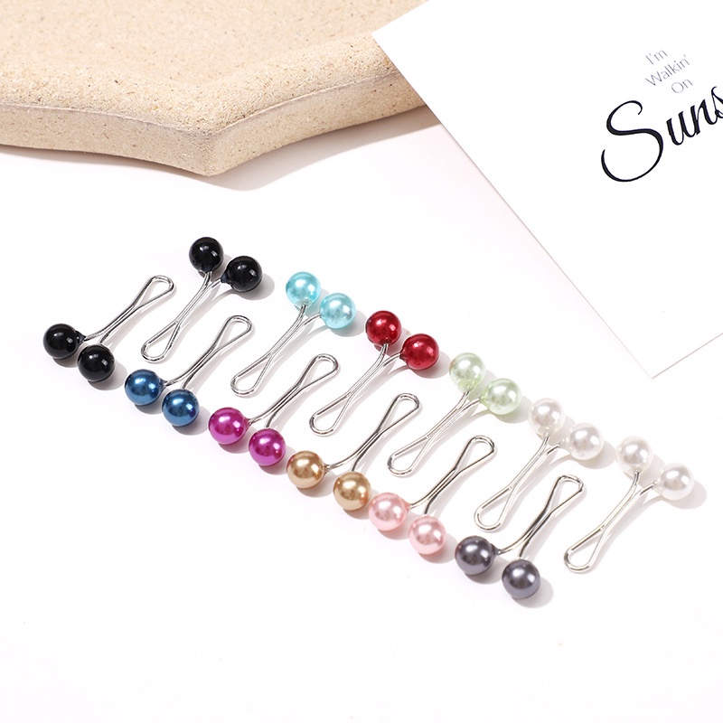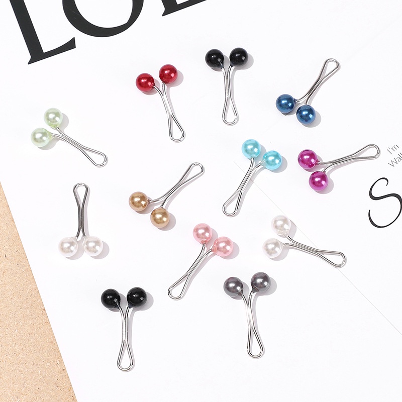Jifang 12pcs/set Colorful Pearls Muslim Hijabs Pins U shape Hijab Clips Silk Scarf Pinless Buckle Pin WJ579