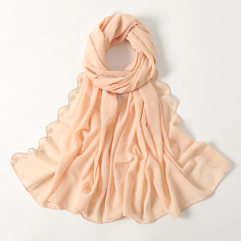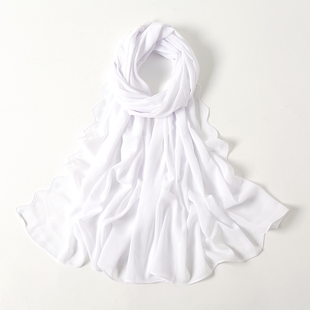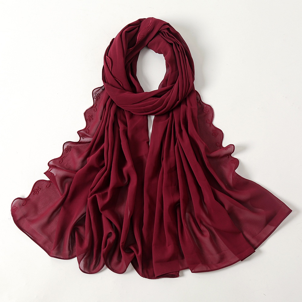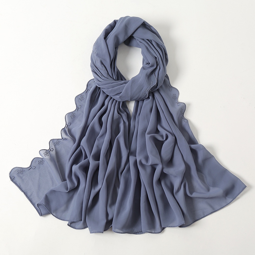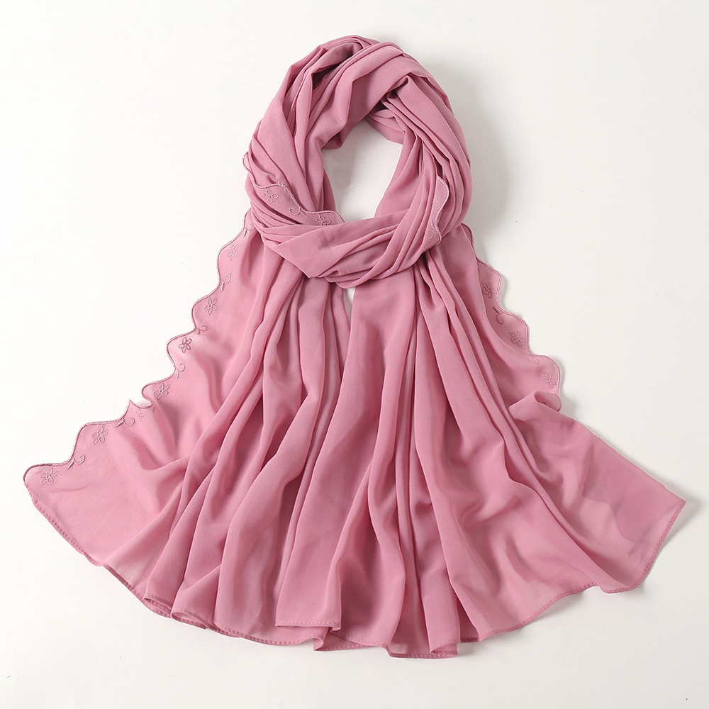 Jifang Women Plain Bubble Chiffon Hijab Pashmina Shawl Embroidery Flower Floral Edge Brim Chiffon Muslim Hijabs Shawls WJ910