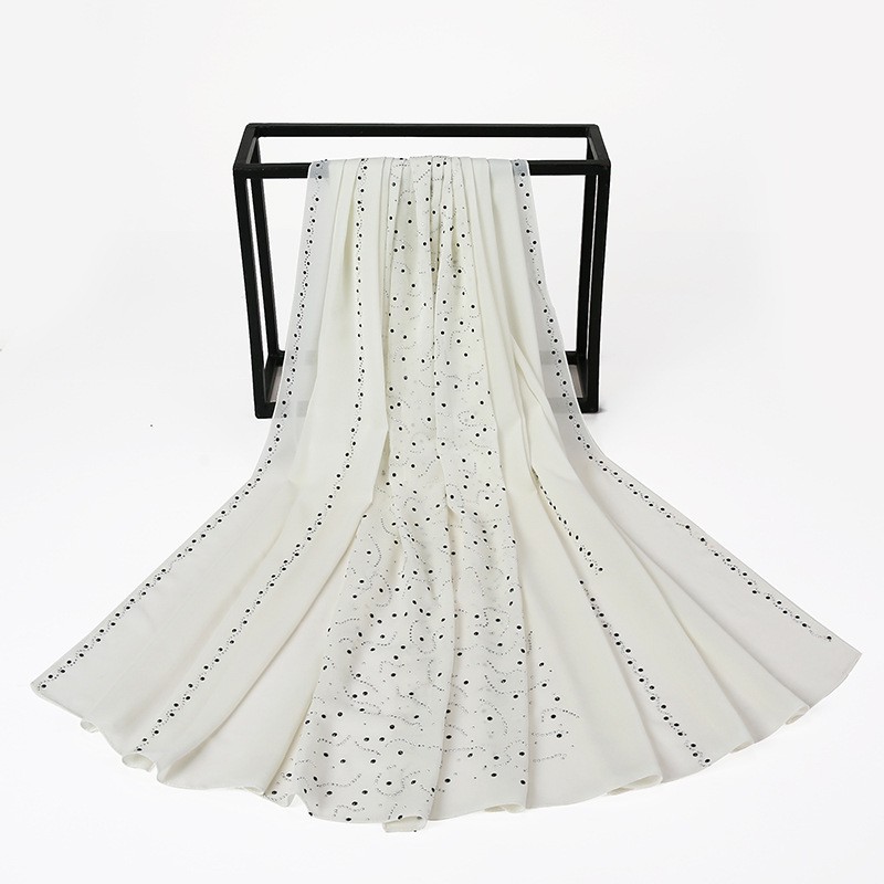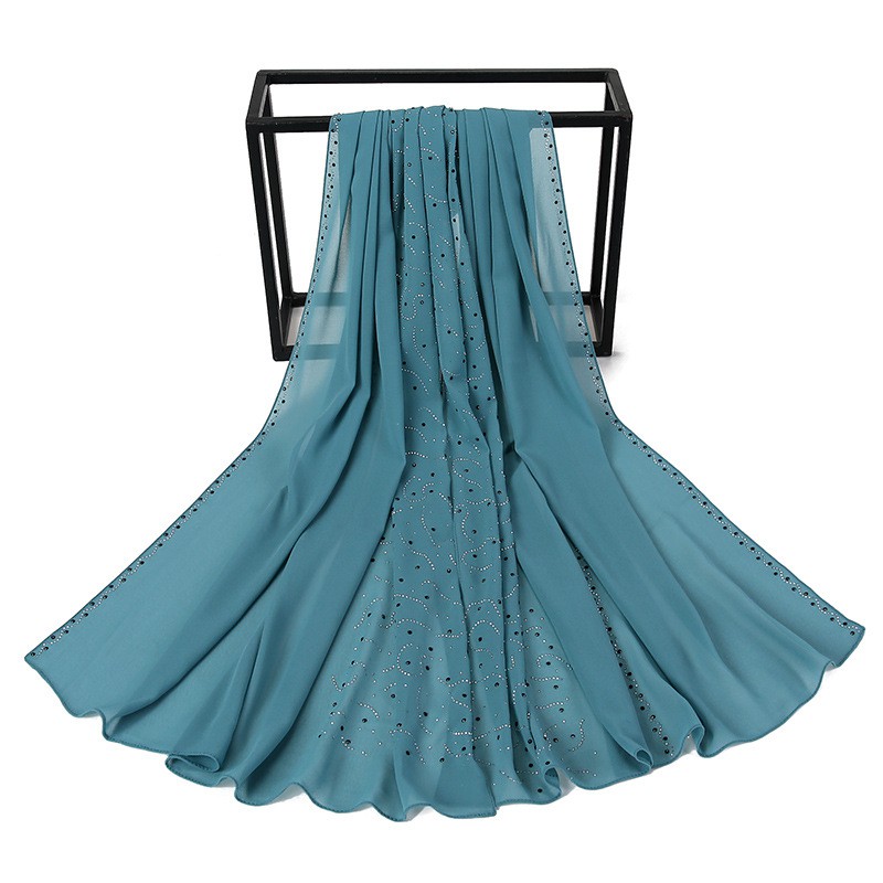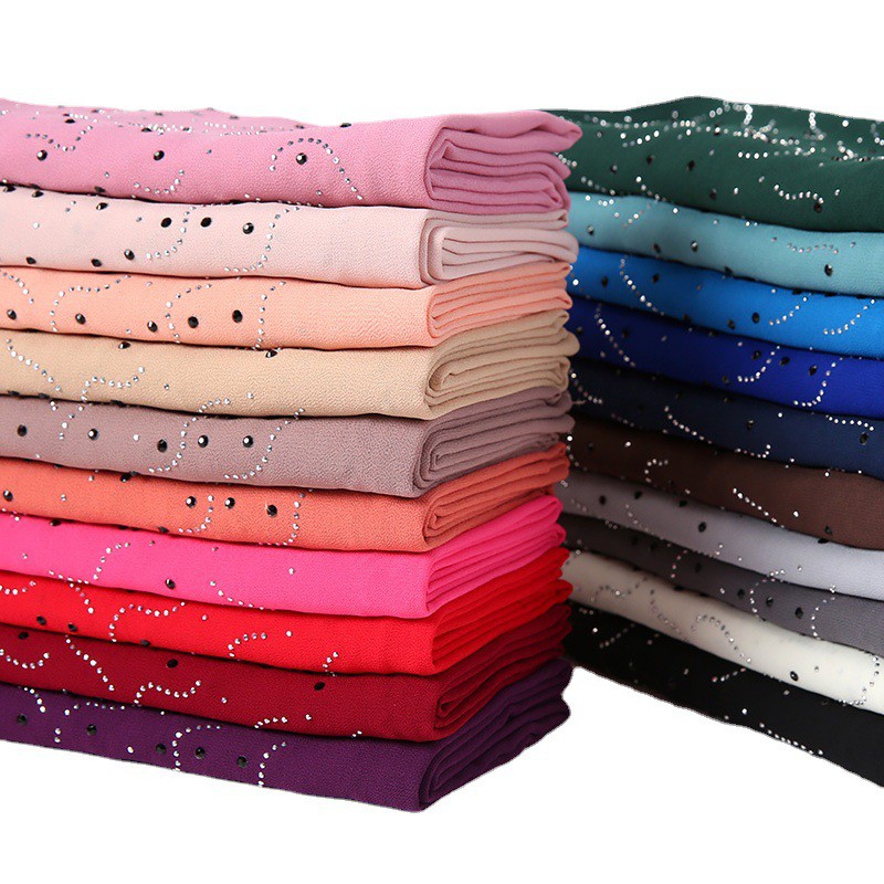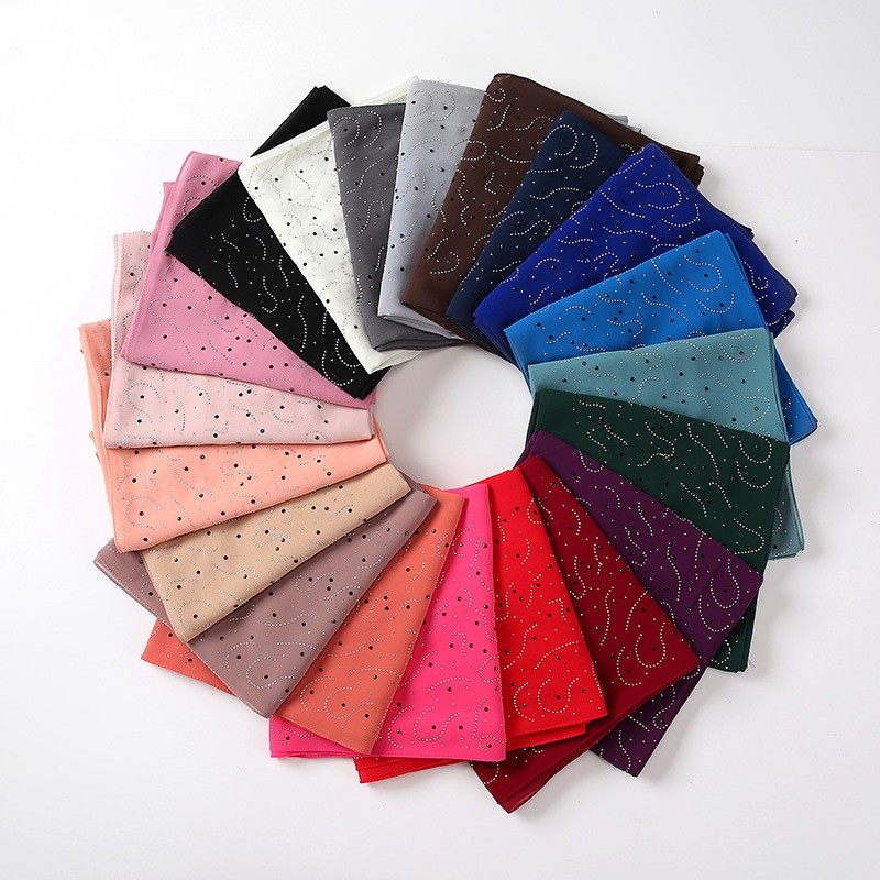 Jifang Women Plain Bubble Chiffon Muslim Hijabs Shawls Fashion Shiny S Shape Rhinestone Design Head Scarf Wraps Tudung Turban Shawl Hijab 20 Colors 175x70cm WJ601