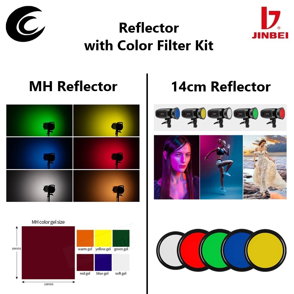 Jinbei 14cm Reflector & MH Reflector with Magnetic Color Filter (Bowens Mount)