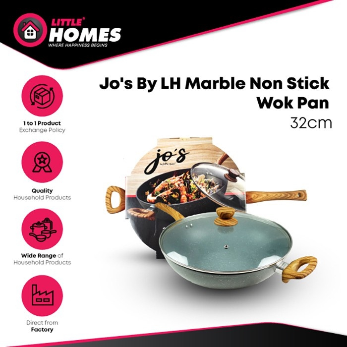 28cm/32cm/24cm 5-Layers Non-Stick Marble Stone Induction Wokpan & Soup Pot W Glass Lid Cover / Kuali Periuk Tidak Lekat