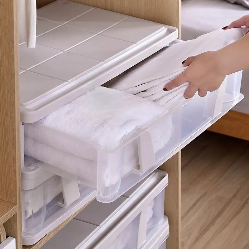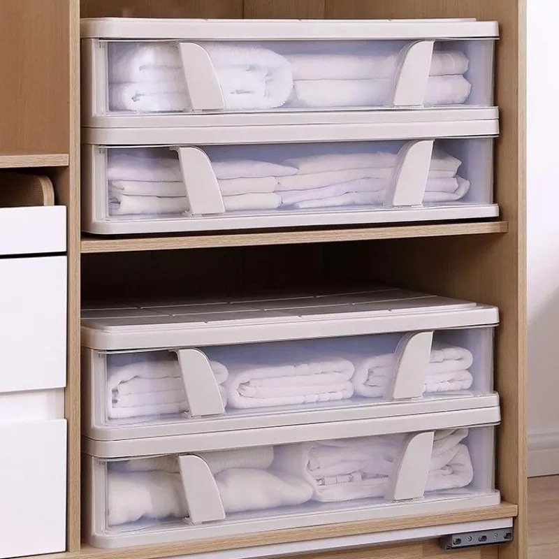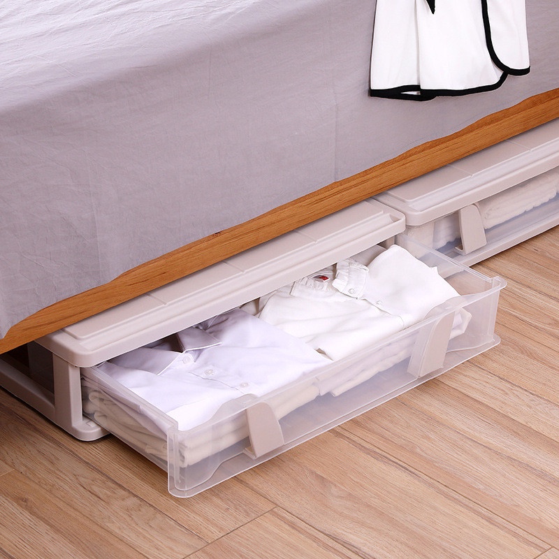 Johor Seller || Bed bottom storage box plastic flat quilt drawer type storage box with pulley bed under the clothes