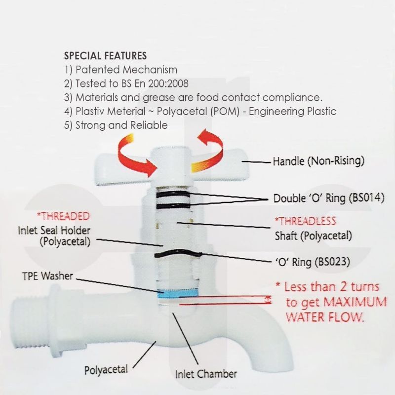 Jopex PVC Bib Tap Round Handle Bib Tap Plastic Water Tap Kepala Paip Bulat Plastik Air 1/2" (ori) (MS)