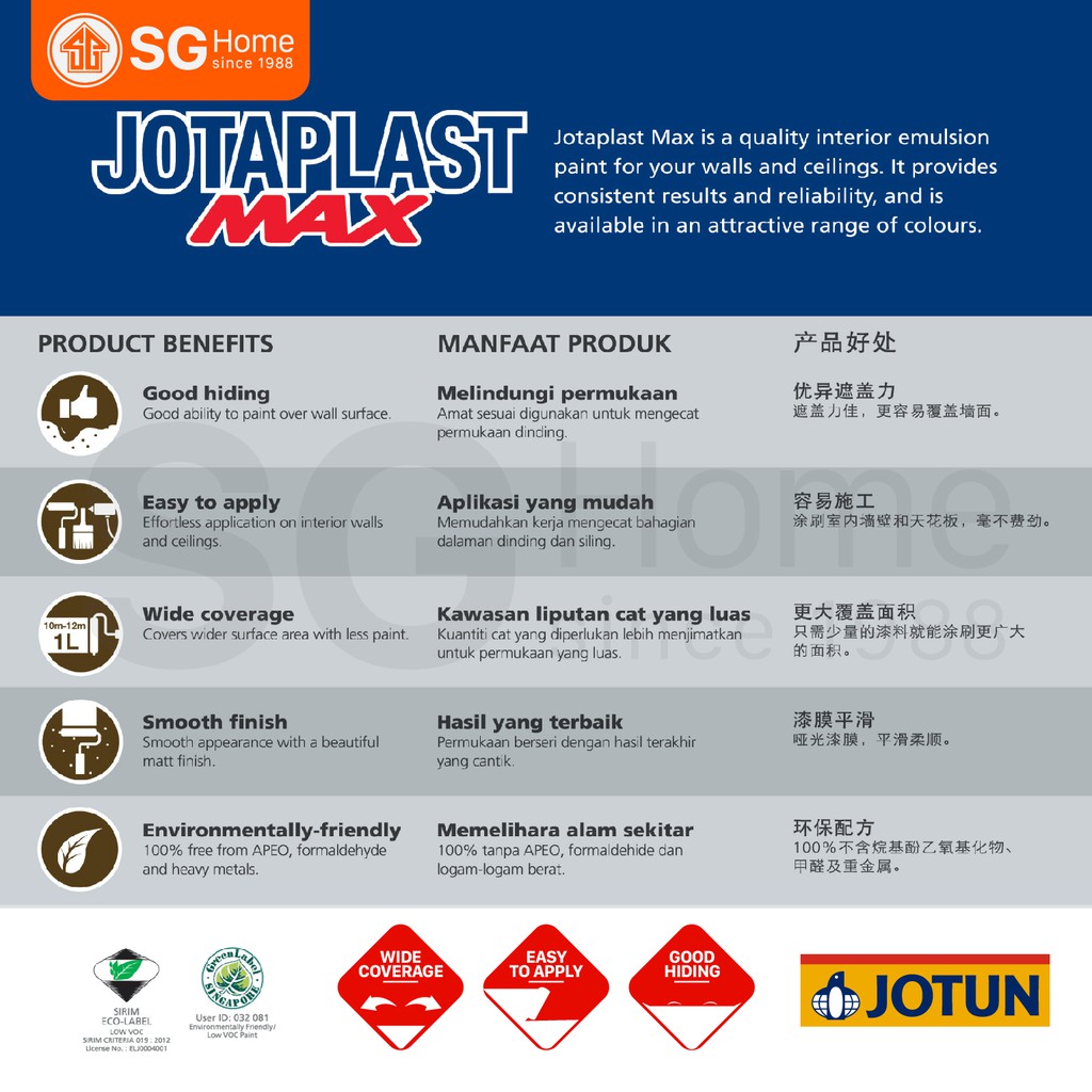 Jotun Paint Interior Emulsion Jotaplast Max (White) 18L