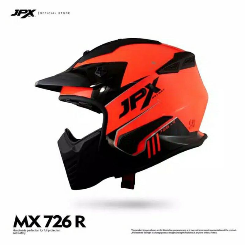 Jpx Full Face Helmet MX-726R Fluorescent Red Doff-Black (Retro/Modular/Classic)