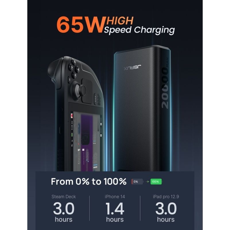Jsaux 20000mAh PD 65W Power Bank for steam deck /rog ally/phone/tablet