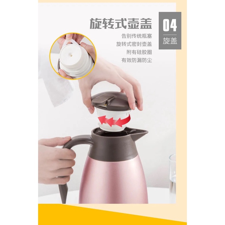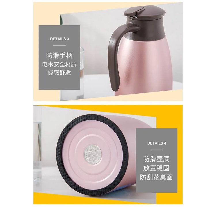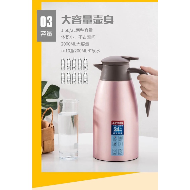 2000ML Thermos Flask 2L Vacuum Double Layer Stainless Steel Jug 304 Hot Cold Tahan Lama Air Panas Bottle 保温壶瓶耐久保冷大容量
