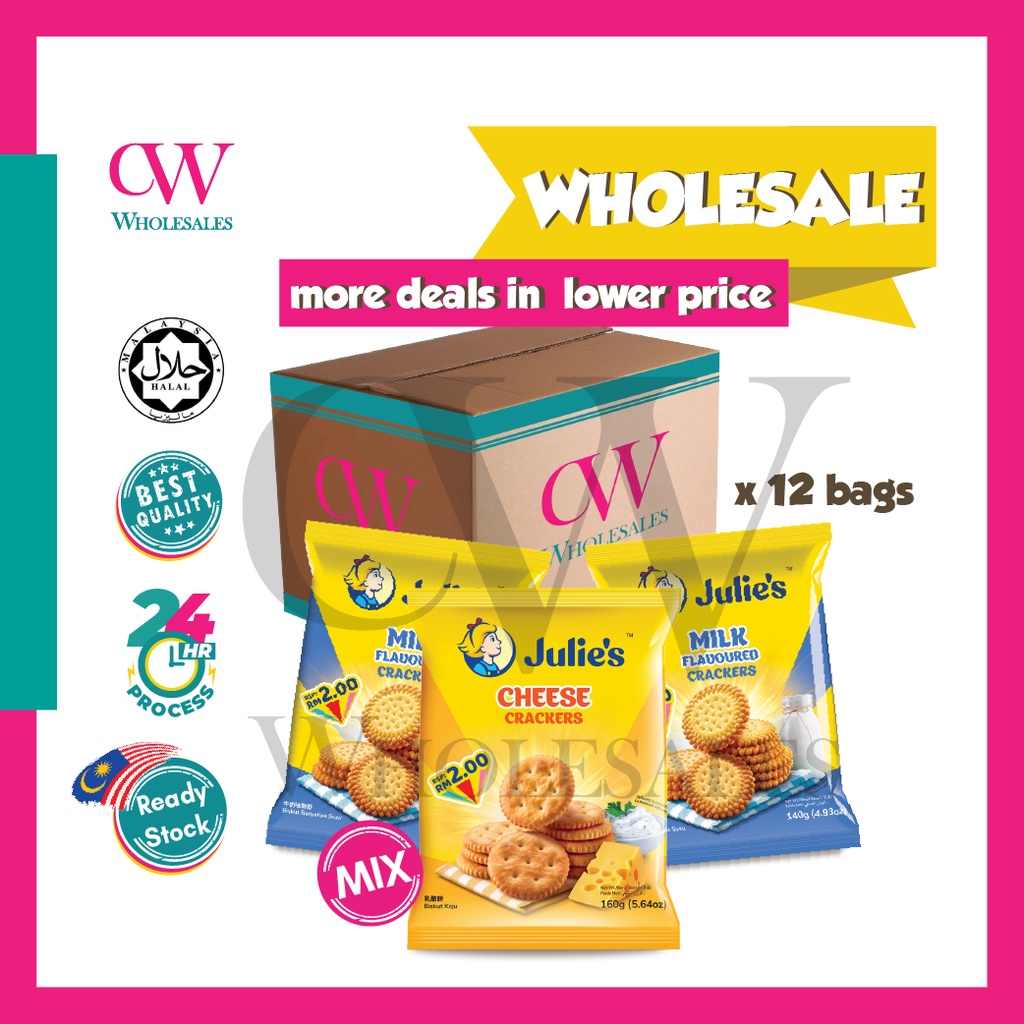 Julie's Cheese Crackers Julie's Milk Flavoured Crackers Julie Milk Flavoured Sticks Julie's Choco Sticks 80g 100g