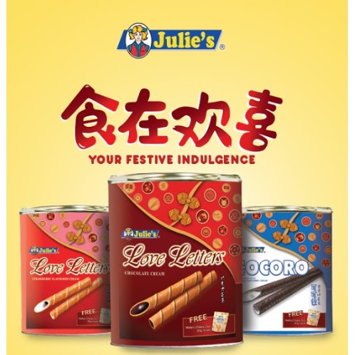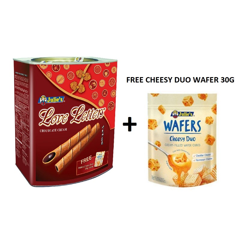 Julies Love Letter Chocolate Cream Roll Biscuits 700g + Free Chessy Duo Wafer 30g
