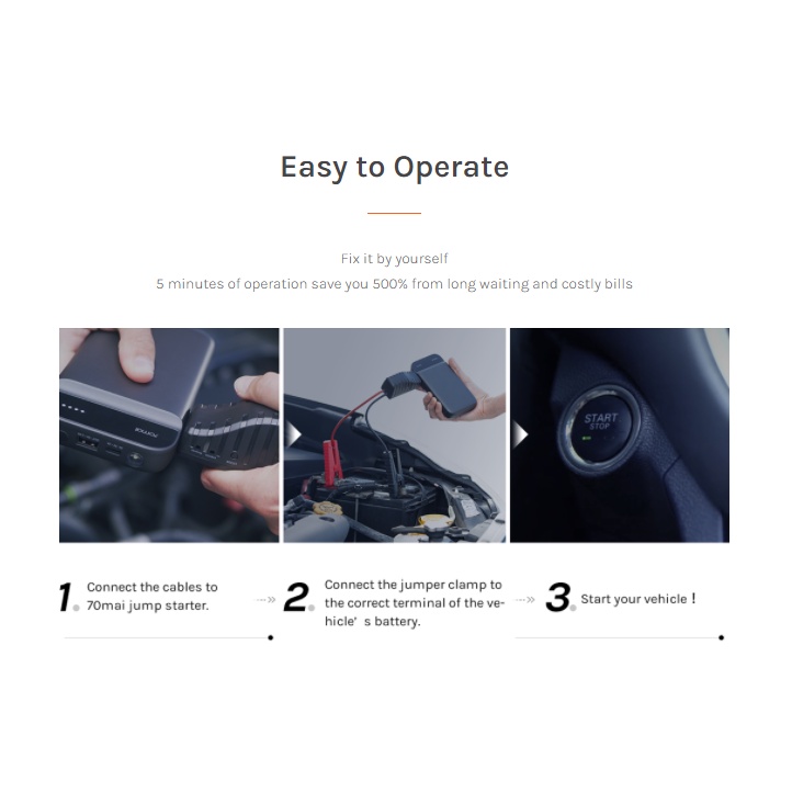 Jump Starter Jumper PS01 Portable Power bank Rechargeable Car Emergency Fast Start up Easy Use Built in LED