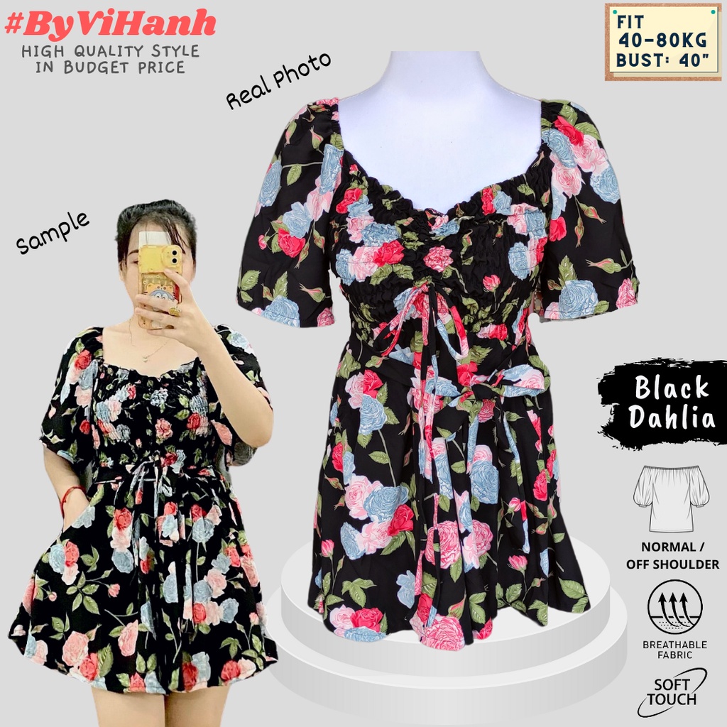 Jumpsuit Viral Premium Floral Flower Square + Drawstring + Pockets + Wide Leg + Fit 40-80kg | Jumsuit Pendek Cerut Dada