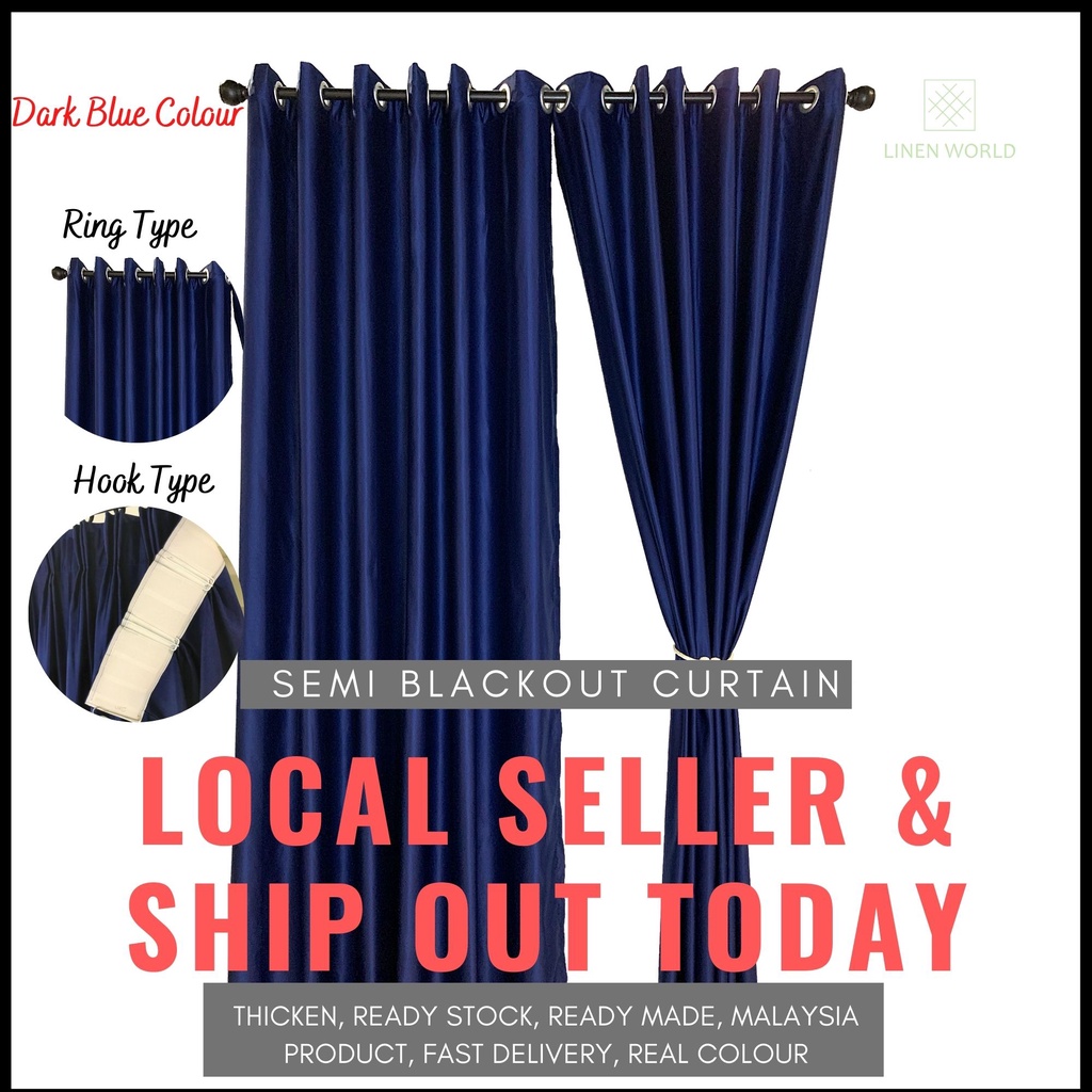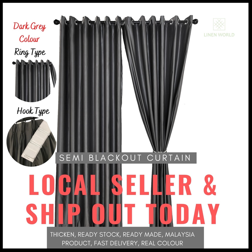 【Ready Stock】NOAH Curtain 80% Blackout Siap Jahit Lembut UV Curtain FREE Hook / Ring Sliding