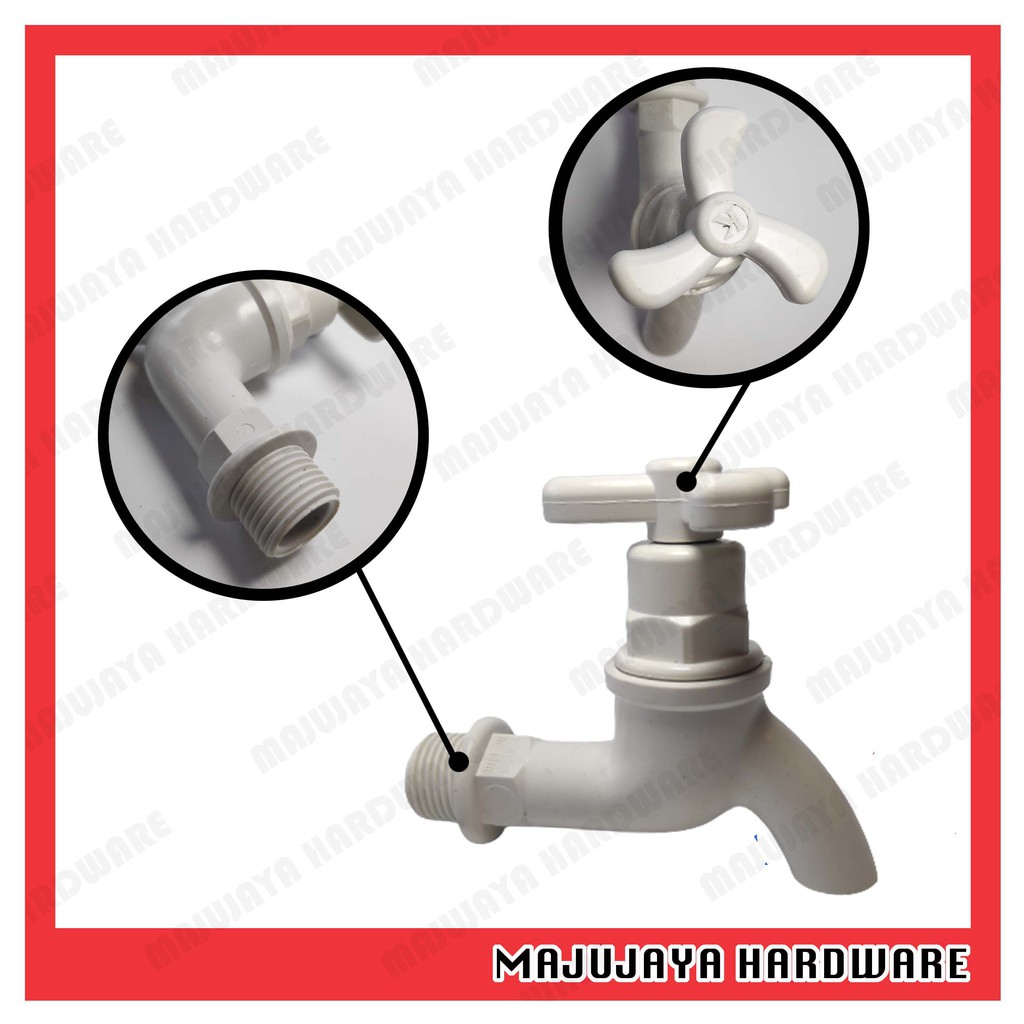 K 1/2'' - 15mm PVC Plastic Bibcock Biptap Water Tap Stopcock Stop Valve White BY-124 SY-134 Bib Tap Bib Valve