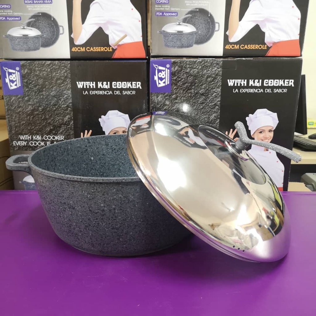K&I Germany 40cm KUALI BATU / STONE Periuk Rendang Periuk Batu Granite Induction, Granite Ceramic St