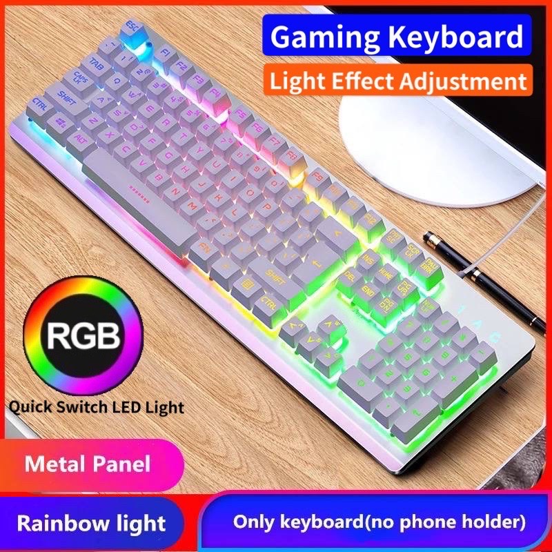 Papan Kekunci Mekanikal Permainan K002 RGB LED 104 Kekunci, Rasa Backlit untuk E-Sukan, USB Berwayar untuk PC & Laptop