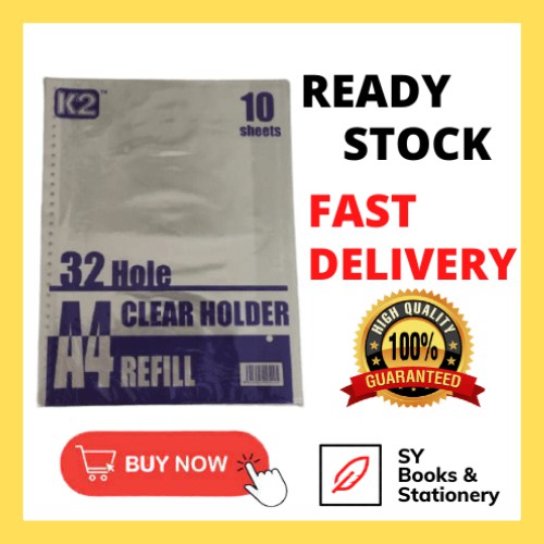 K2 Clear Holder A4 Refill (10s, 32 holes, PP) Refill Clear Holder Saiz A4 (32 Holes)