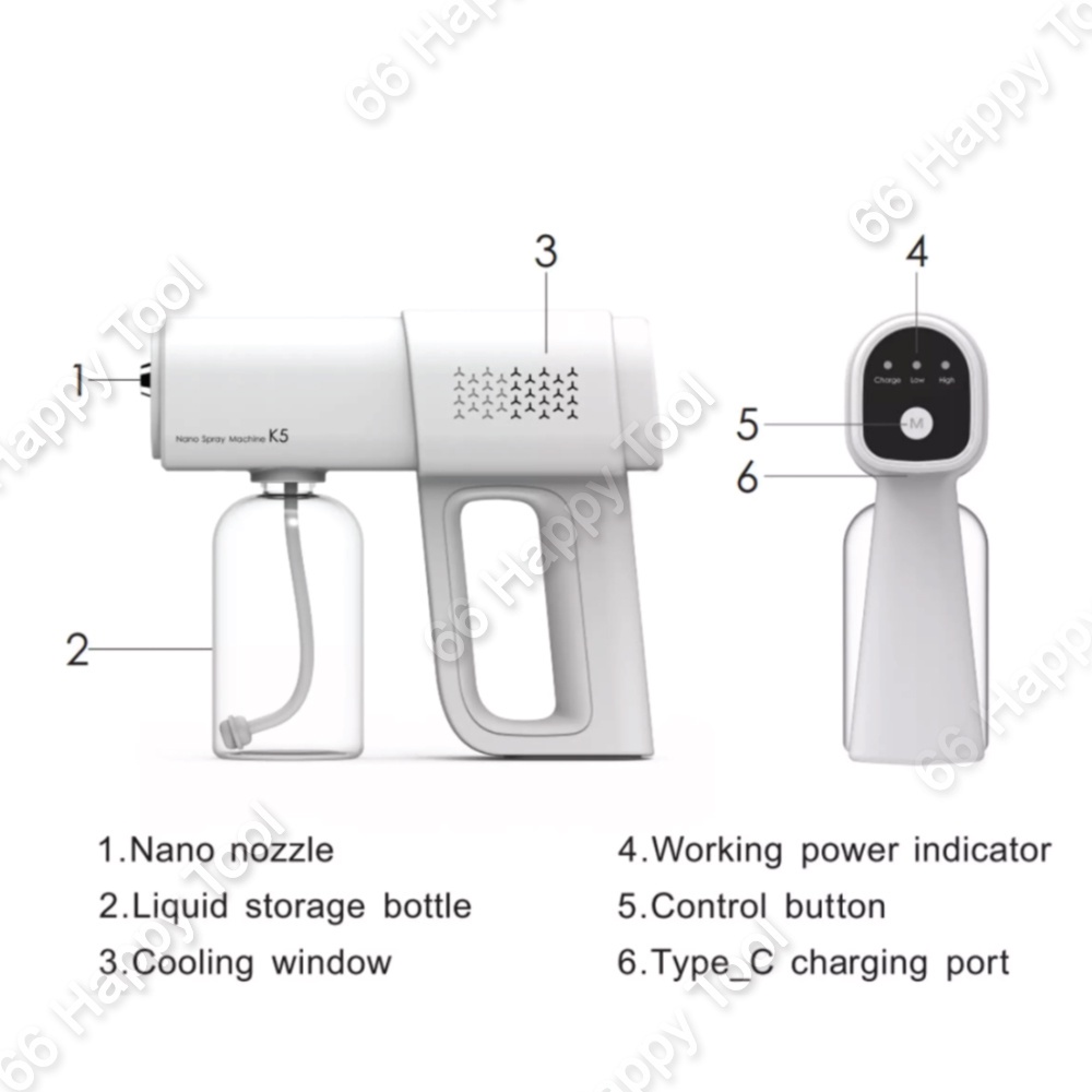 K5 Nano Spray Machine 380ml Spray Gun Sanitizer Rechargeable Wireless Handheld Disinfection Mesin Pembasmi Kuman