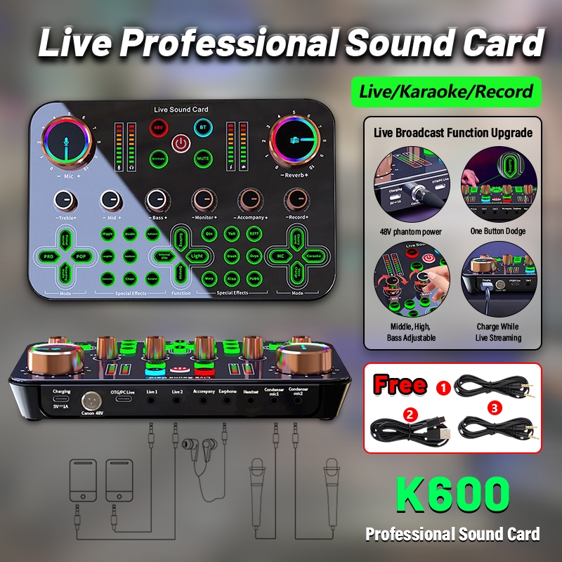 K600 Professional Sound Card Condenser Microphone Set Studio Audio Interface Mixer for Live