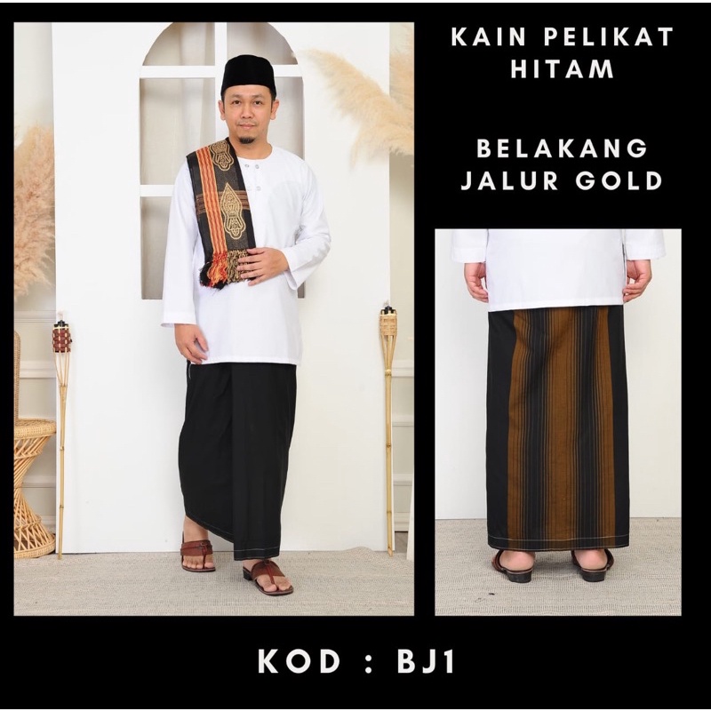 KAIN PELIKAT PLAIN HITAM / JALUR GOLD / BENANG 4000 EKSKLUSIF & CANTIK