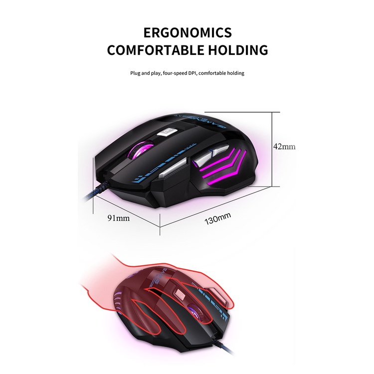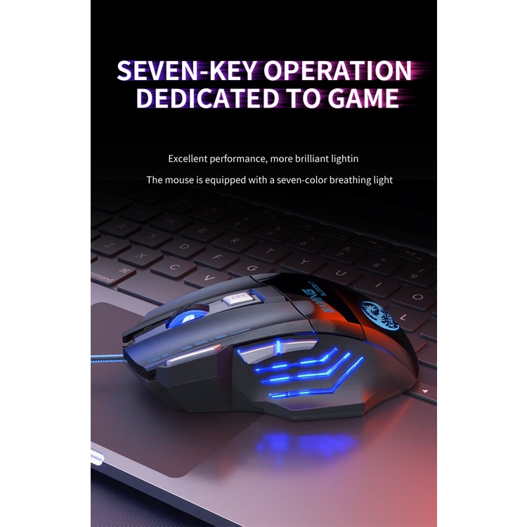 KAKU JINGYOU Gaming Mouse 7 Keys RGB Light 7200 DPI Ergonomic Wired USB PC Laptop MSI