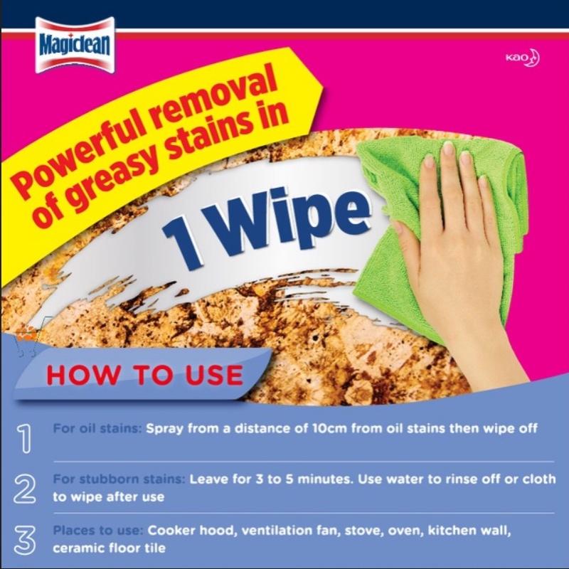 KAO Magiclean Kitchen Trigger Cleaner Spray 500ml Refill Lime / Apple Powerful Removal of Greasy Stains in 1 wipe