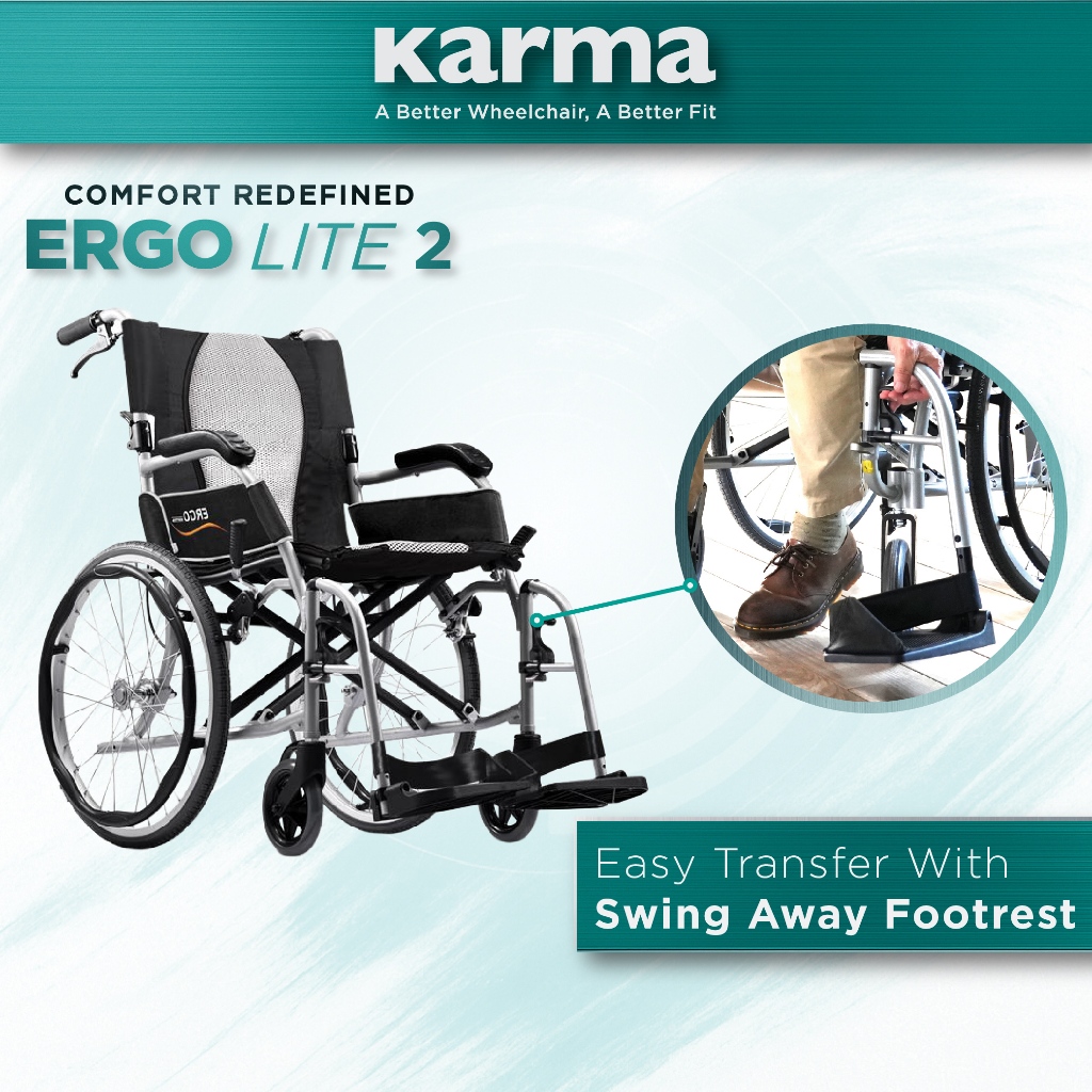 KARMA Ergo Lite2 Aluminum (Ultra Lightweight Wheelchair) With Swing Away And Detachable Footrest