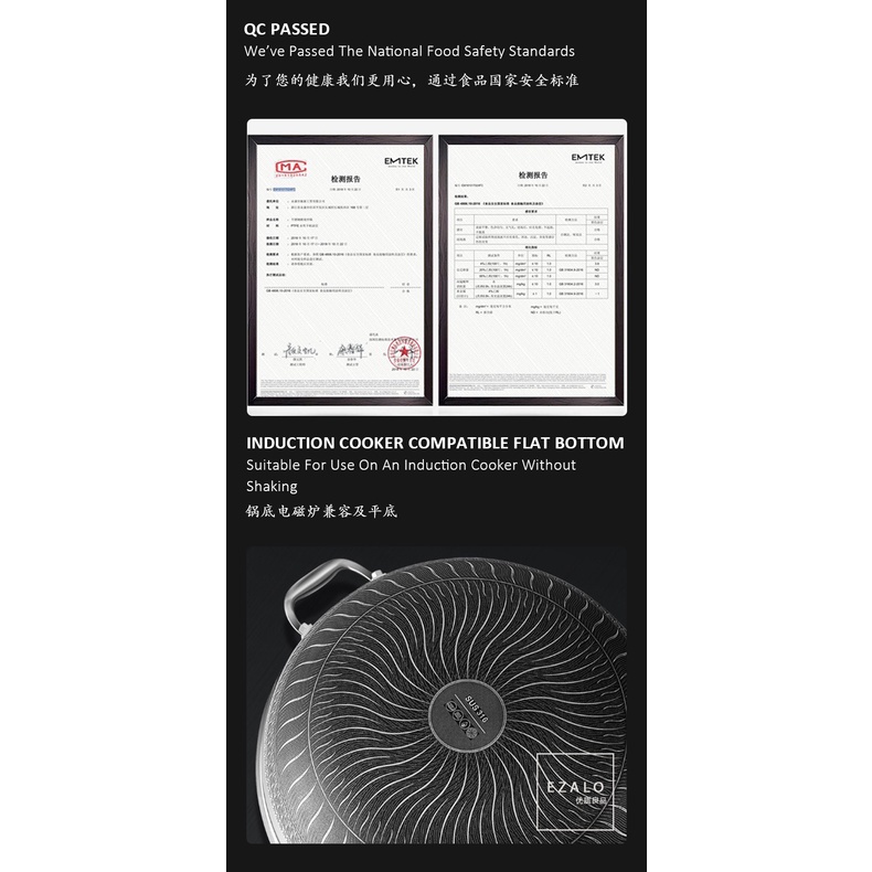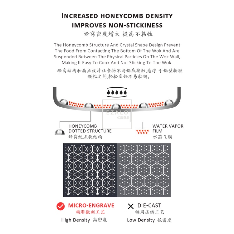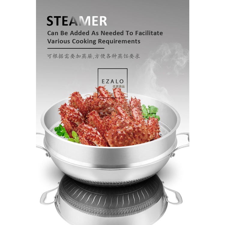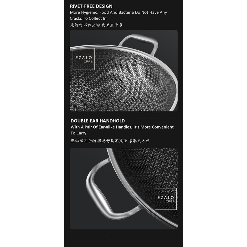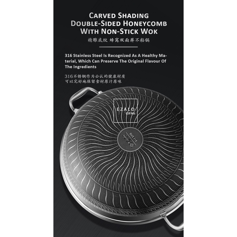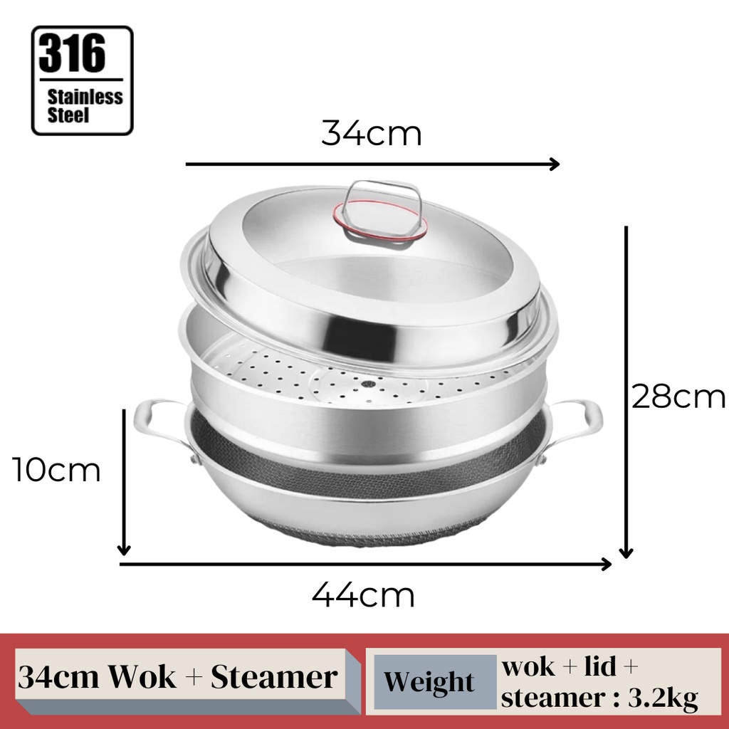 KATA Double Ear Handhold 316 Stainless Steel Honeycomb Pan Non-Stick Wok With Lid (34/36/38/40/42cm)