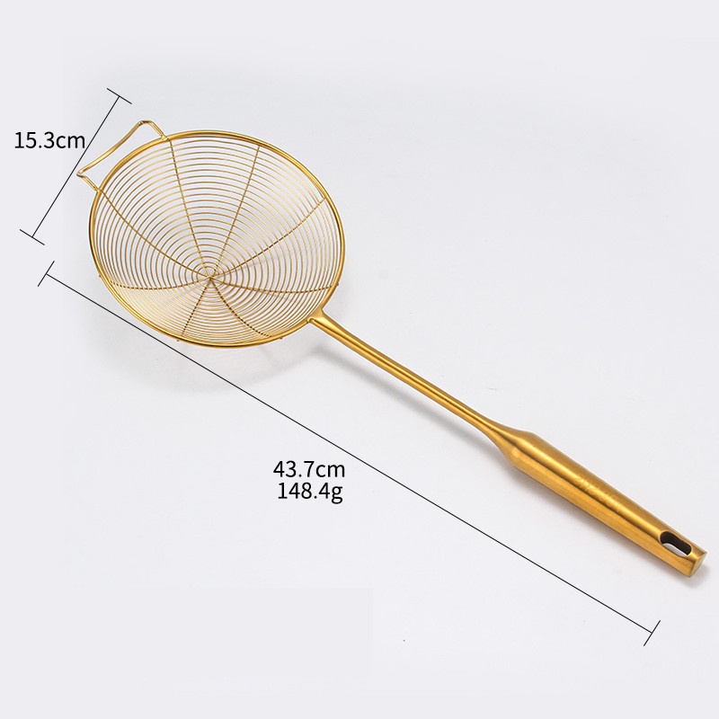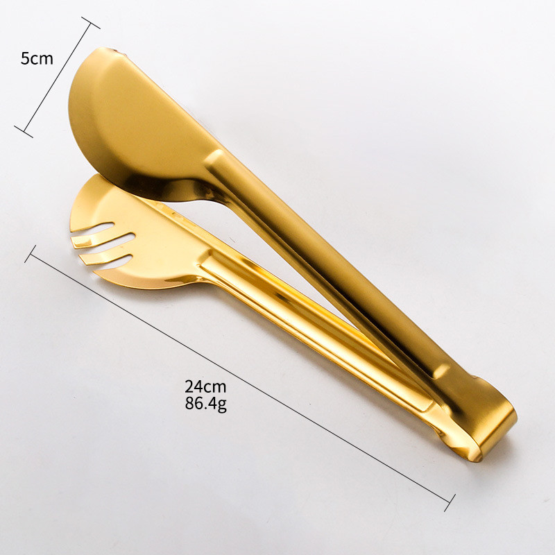 KATEKV High Quality Gold Kitchenware Set Stainless Steel Cooking Tweezer Soup Spoon Strainer Spoon Steak Clip Fondue Spoon Colander Spoon Rack