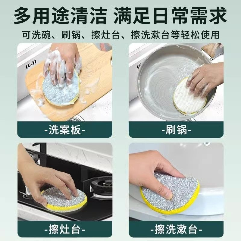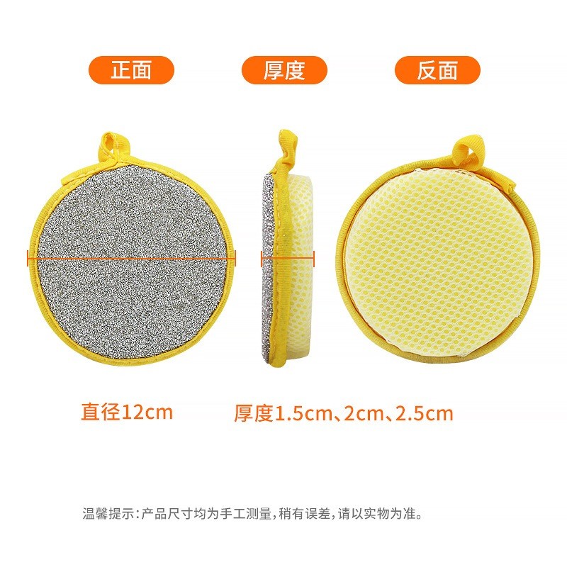 KAUKAU Span Bulat Double-Sided Round Dishwashing Strong Sponge Kitchen Yellow Kitchen Sponge Scrubber Pad