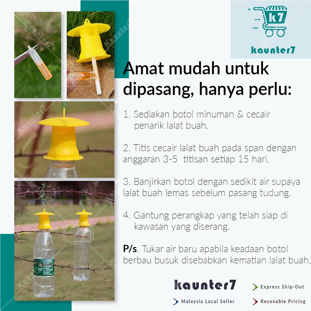 KAUNTER7 Tudung Botol Perangkap Lalat Buah/ Fruit Fly Trap / Bactrocera Trap / Garden Pest Control +Free 2ml Attractant