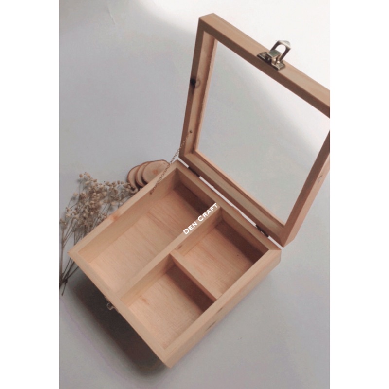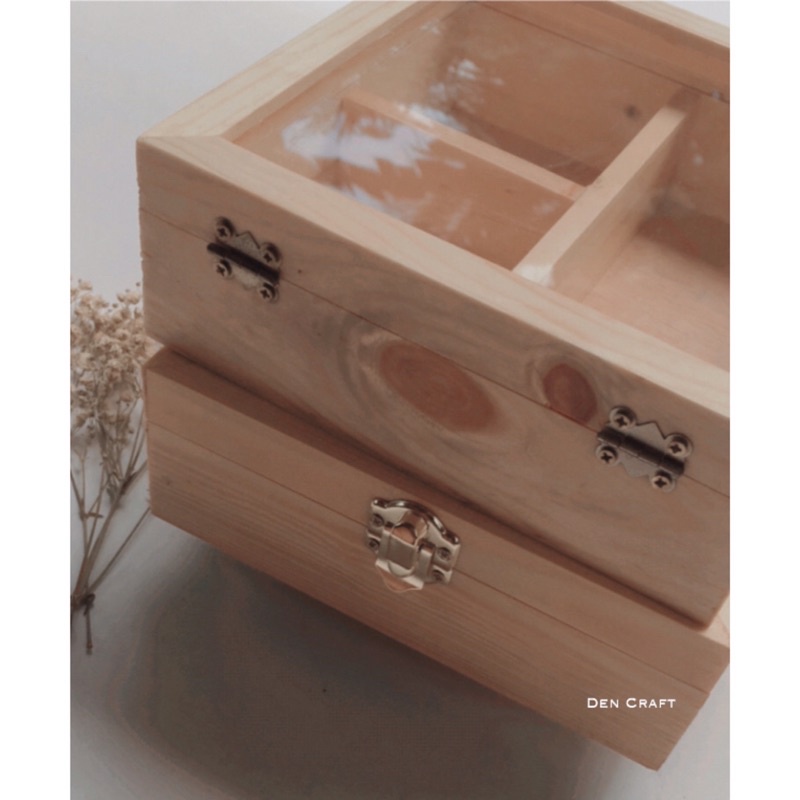 KAYU Wooden Jewelry Box Delivery Acrylic Lid Rustic Craft Materials Dutch Teak Wood FINISHING CLEAR 3-piece