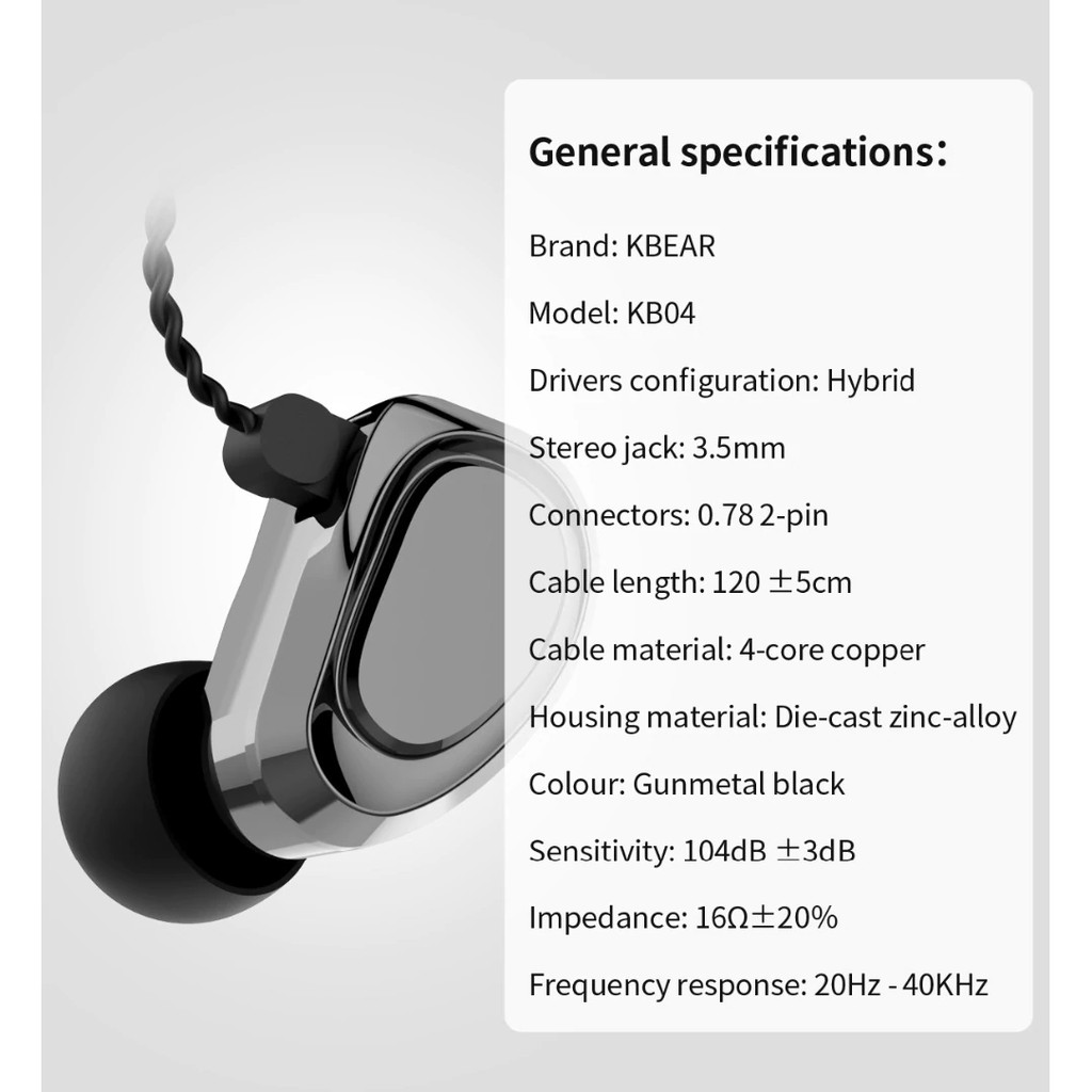 KBEAR KB04 1BA+1DD Hybrid Drivers In Ear Earphone HIFI