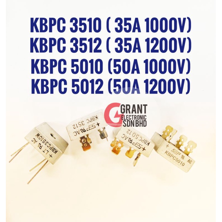 KBPC3510 KBPC3512 KBPC5010 KBPC5012 35A 1000V 1200V 50A 1000V 1200V Single Phase Square Diode PCB Bridge Rectifier