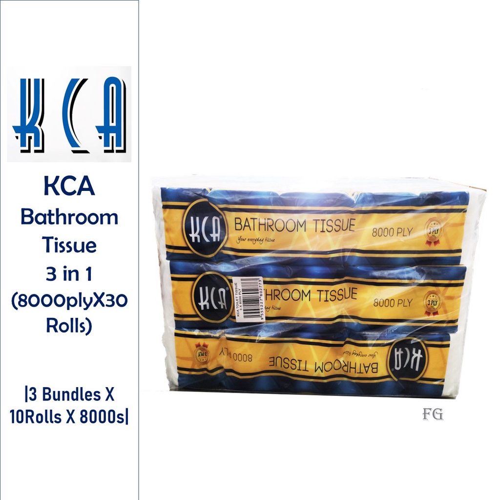 KCA 3ply Bathroom Tissue 3 Bundle X 10 Rolls x 8000 sheets (3 in 1)