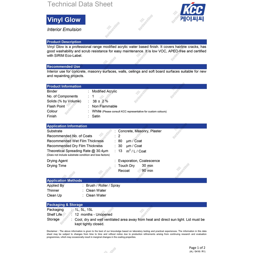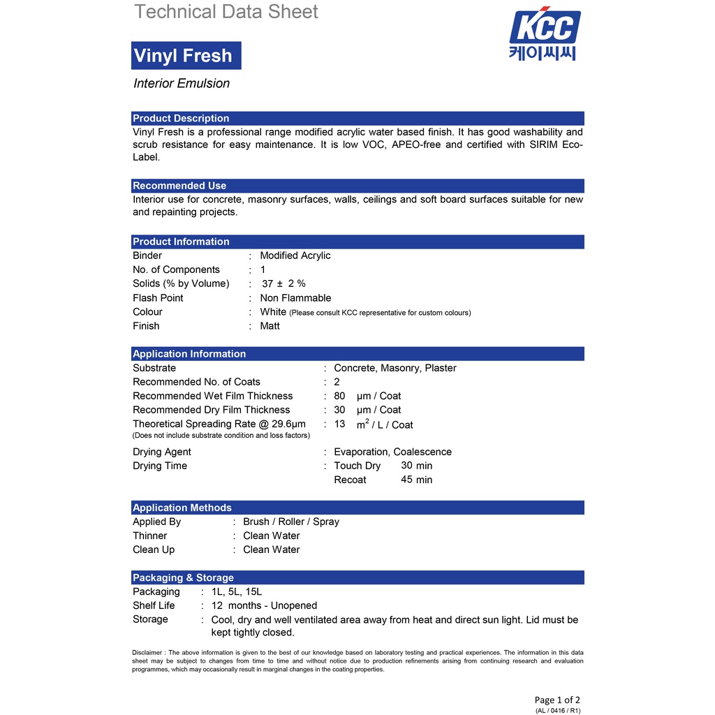 KCC PAINT KOREA VINYL GLOW KILAT/ VINYL FRESH MATT EASY WASH MUDAH CUCI - 5L