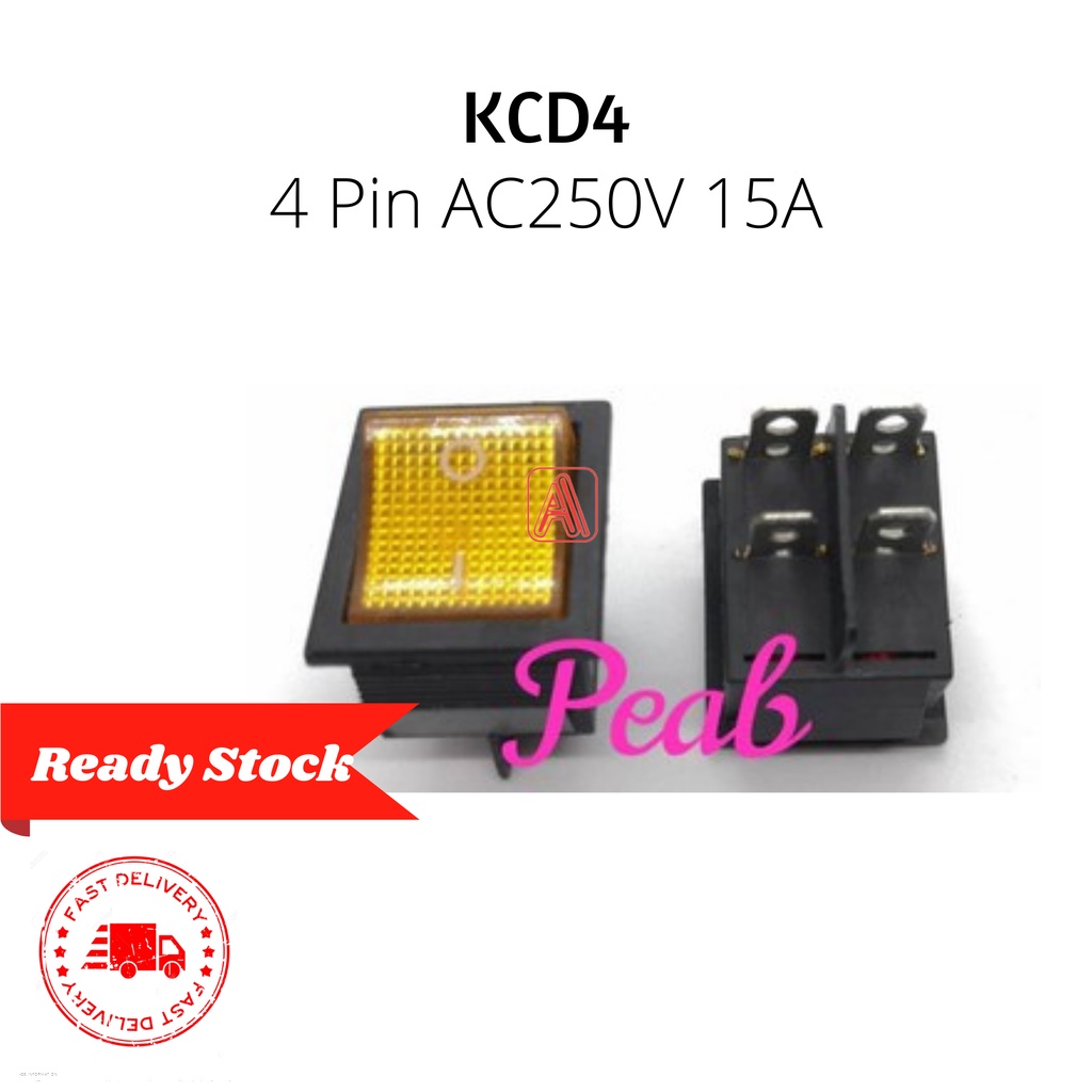 KCD4 4pin / Terminal Ac250v 15a Rocker Switch(1pc)