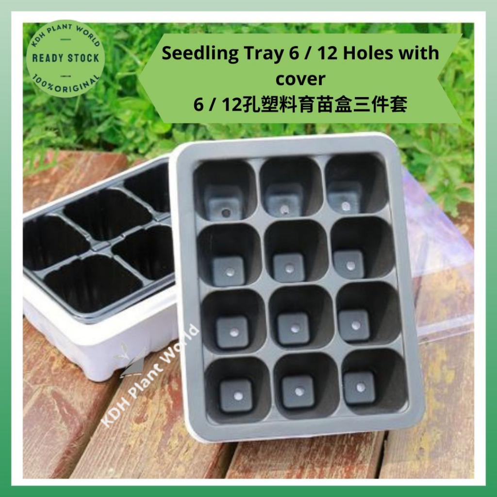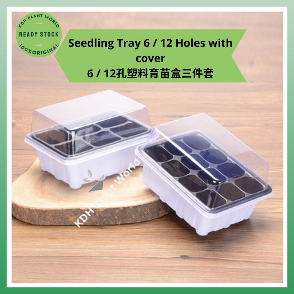 KDH Ready Stock Seedling Tray 6 12 Holes With Cover / Dulang Bekas Semaian 6 12 Lubang (3 set) 6 12孔塑料育苗盒三件套