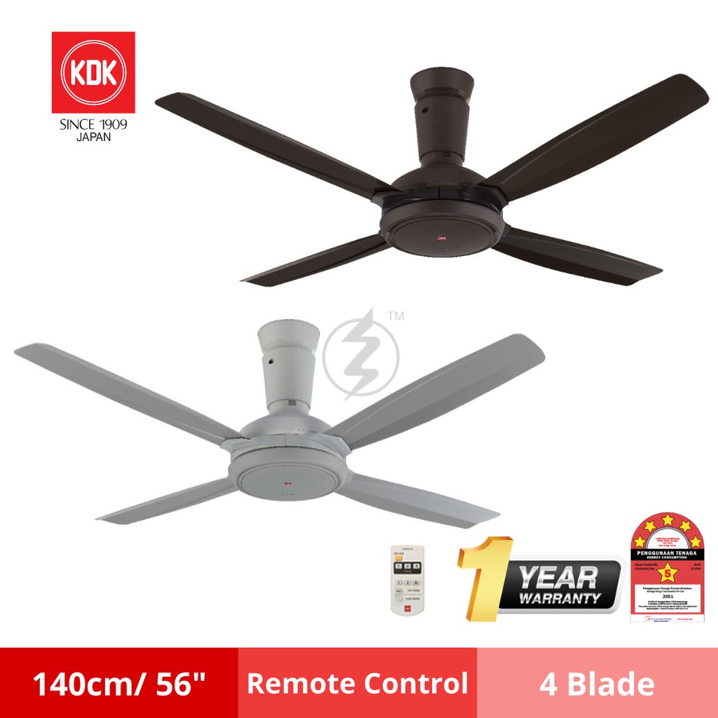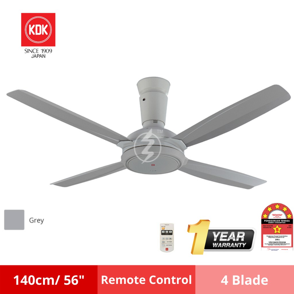 KDK 56" inch 4 BLADE REMOTE CONTROL CEILING FAN / KIPAS K14XZ-PBR/GY (GREY / BROWN)