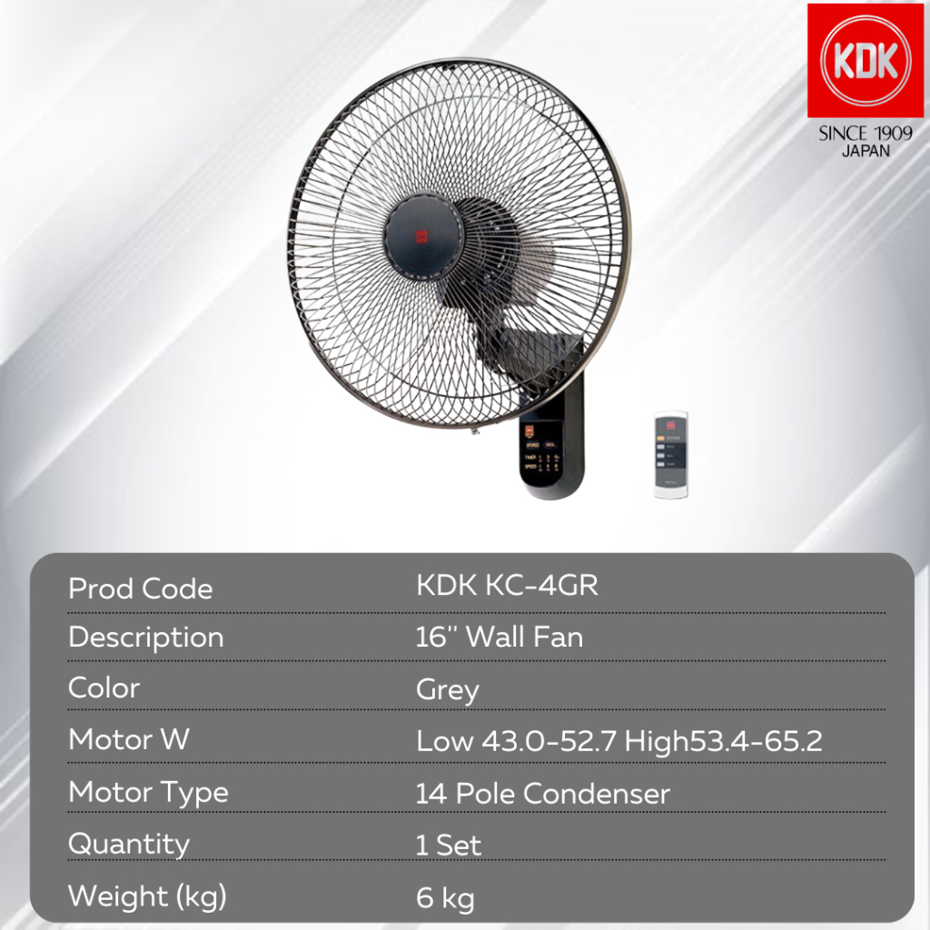 KDK KC-4GR/ PRESTIGE (16"/40cm) Kipas Dinding Fan Wall Fans with Thermal Safety Fuse & On / Off Push Button