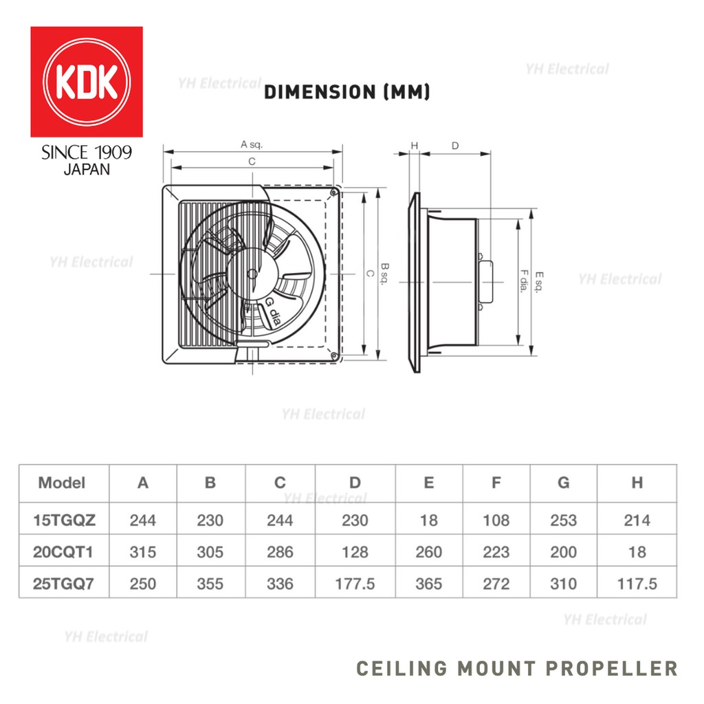 KDK 8"/ 10" inch Ceiling Mounted Ventilating Fan / Exhaust Fan 20TGQF /25TGQ7