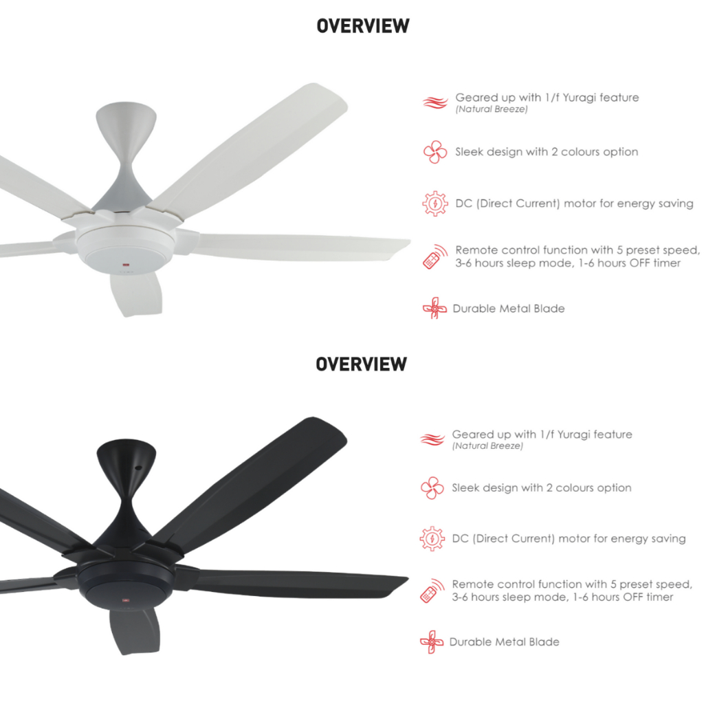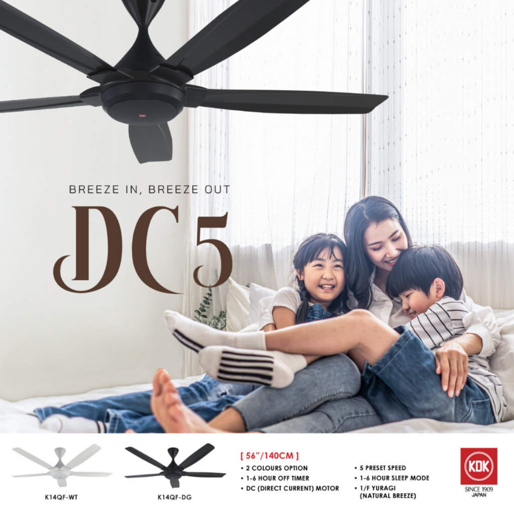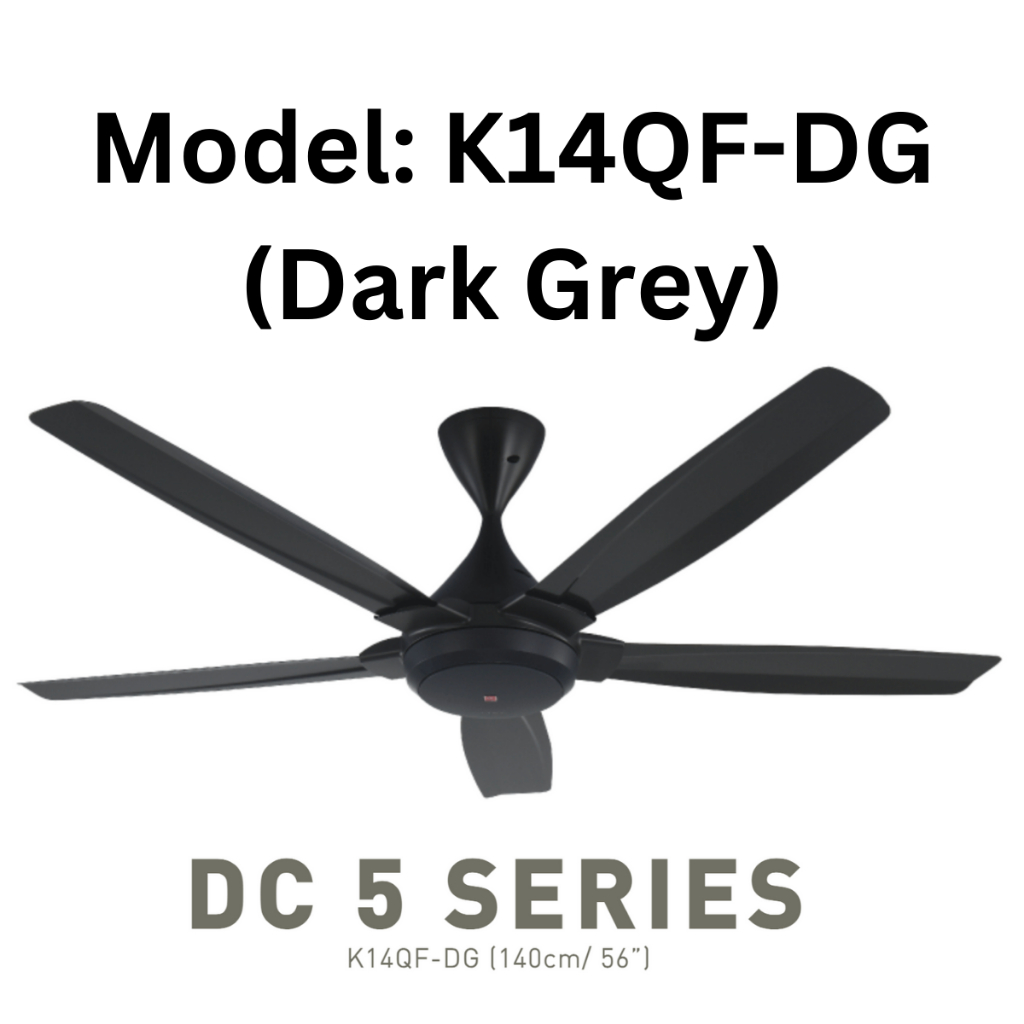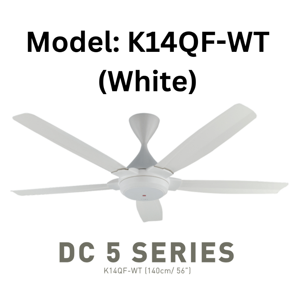 KDK DC5 K14QF-DG (DARK GREY) / K14QF-WT (WHITE) REMOTE CONTROL 5 BLADES CEILING FAN DC MOTOR. KIPAS